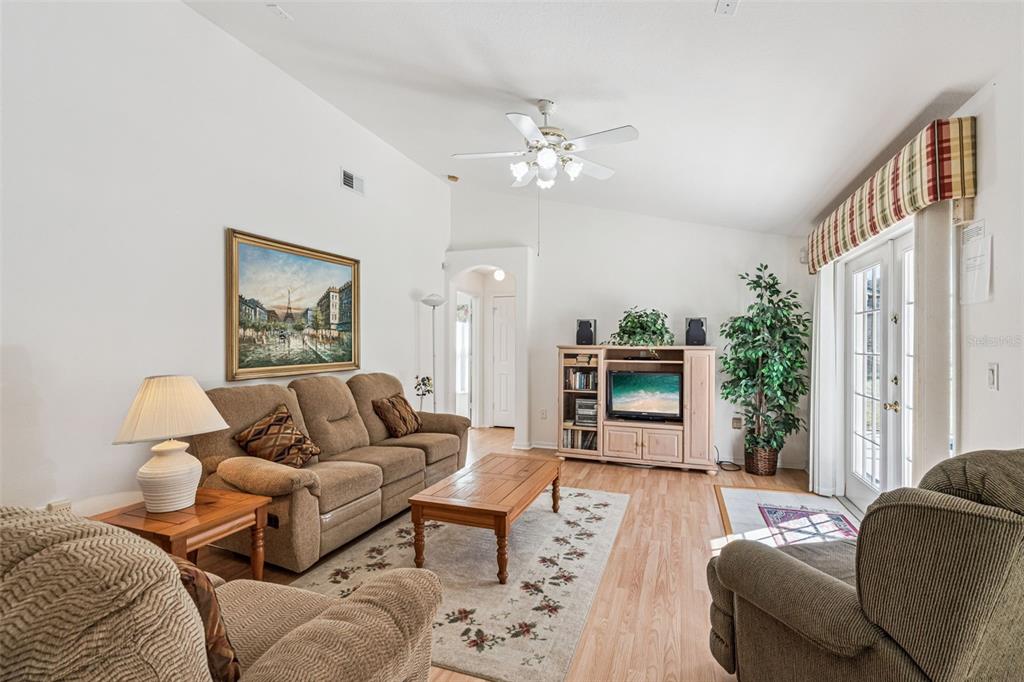With just over 2000 sq feet of living space, this home has so much potential. This is a wonderful floor plan. The formal living and dining area are spacious and filled with light, with access to the pool deck through the french doors. The Primary bedroom suite is on the right as you enter, it also has stylish french doors leading out onto the sunny pool deck, the bedroom is a good size, there is lots of closet space and the bathroom has dual vanities, a luxurious soaking tub and walk in shower. Moving into the kitchen and family room area, the kitchen is a good size, with plenty of counter space and cupboards. The breakfast nook overlooks the pool and the family room is spacious and has laminate flooring, access to the pool deck is also through french doors here. The remaining bedrooms are on this side of the house. Bedroom 2 is a good size and has an adjacent bathroom with access to the pool area which is so convenient. The other two bedrooms share the main bathroom. Moving onto the pool deck, the lanai is a good size and offers plenty of shade from the Florida sunshine. The pool deck has plenty of room for loungers and the sparkling blue pool is so inviting especially on those hot summer days. Greater Groves is a wonderful community, with a low HOA, community pool, playground and tennis courts. It is an ideal location… situated on HWY 27, close to shops and restaurants…. Disney and the other theme parks are also close by…It is also zoned for Short term rental so it is an ideal location for a family or vacation home.