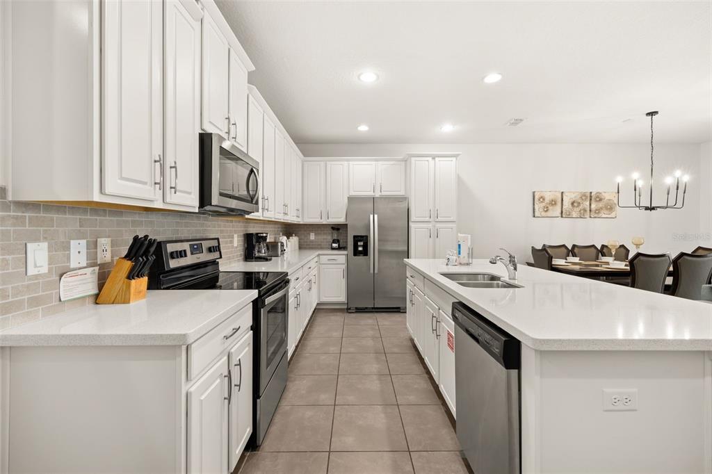 Step inside to a bright, open-concept layout designed for modern living and effortless entertaining. The spacious kitchen is a true centerpiece, featuring sleek white cabinetry, stainless steel appliances, and a large island that flows seamlessly into the dining and living areas—ideal for hosting guests or relaxing. Large sliding glass doors lead you to your private outdoor oasis.