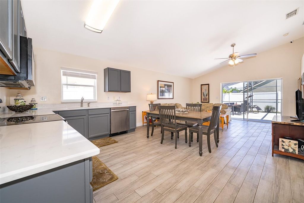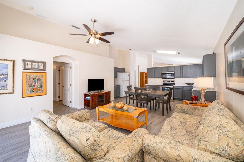 Beautiful 4-Bedroom and 3-Bathroom Pool Home in Gated Mission Park Community. Located in the inmacuwlous gated community of Mission Park in Clermont, this meticulously maintained home offers a perfect blend of style, comfort, and Florida charm. Upon entry, you’ll find a spacious living and dining area filled with natural light, creating a warm and welcoming ambiance. The home features modern lighting and elegant high baseboards throughout. This stunning home boasts 4 bedrooms and 3 full baths, with tile flooring throughout. The open-concept kitchen has been updated with freshly painted cabinets, great appliances, and quartz countertops, flowing seamlessly into the family room and out to the screened-in pool deck “” your own private oasis for relaxing or entertaining. The primary suite is a luxurious retreat with an elegant ensuite bathroom and two ample his and her walk-in closets. The other bedrooms are generously sized and share two full bathrooms, ideal for families or guests. Low HOA fees of just $64/month give access to fantastic amenities including a pool, playground, park, basketball, and tennis courts””perfect for recreation and family fun. This property is a great opportunity for those looking to capitalize on Florida’s lucrative short-term rental market such as Airbnb, VRBO, and more!. Location is everything “” and this home has it all. Located only just 20 minutes from Central Florida’s world-famous theme parks including Disney, Universal, and more, less than 30 minutes from historic, lakeside Downtown Clermont, filled with unique shops, restaurants, and weekend farmers markets. Prefer a more laid-back, nature-connected lifestyle? Lake Louisa State Park is only 10 minutes away, offering horseback riding, glamping, kayaking, and hiking trails. Plus, fitness enthusiasts and athletes will appreciate the home’s proximity to the NTS and Olympus training facilities, popular with Olympic-level competitors and professionals alike. Don’t miss the chance to make this incredible property yours!