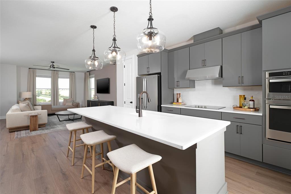 MODEL HOME! Welcome to this stunning 3-story townhome by Ashton Woods in Parkview at Hamlin. Thoughtfully designed with 3 private suites, this home offers flexibility and privacy for family and guests alike. The first-floor suite is perfect for visitors or a home office, while the third-floor primary suite features a spacious layout with a walk-in closet and spa-inspired bath. The heart of the home is on the second floor, where the open-concept living room, dining area, and kitchen flow seamlessly together. The chef’s kitchen boasts 42″ cabinetry, stainless steel GE appliances, white quartz countertops, a large island, and vinyl plank flooring, all opening to a covered lanai for indoor-outdoor living. Additional bedrooms provide plenty of space for comfort and versatility. Located in the vibrant Parkview at Hamlin community, residents enjoy resort-style amenities, access to top-rated schools, and close proximity to shopping, dining, and all that Winter Garden has to offer.
