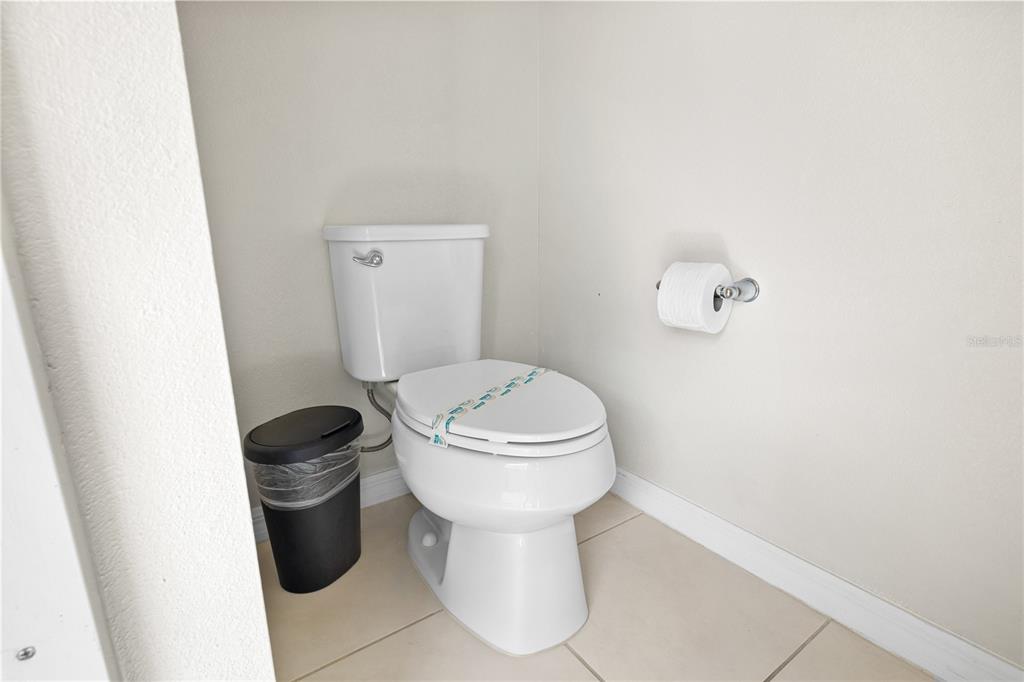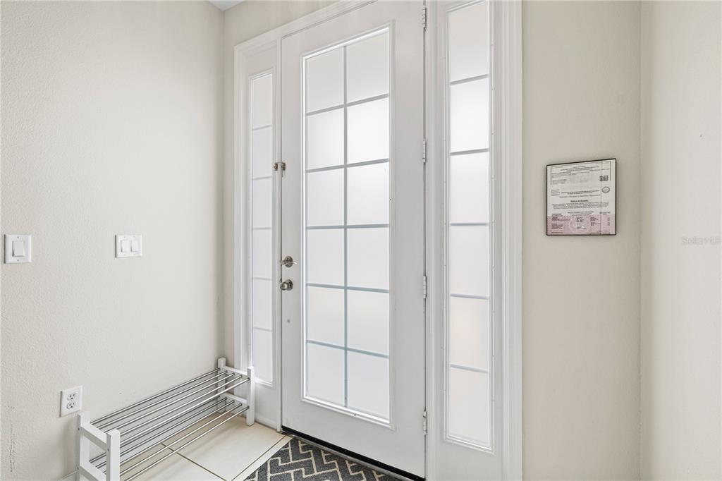 The home includes a private screened-in pool with a convenient pool bath, ideal for enjoying Florida living. The washer and dryer are included and are conveniently located on the second floor.