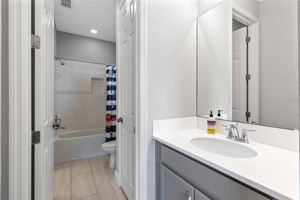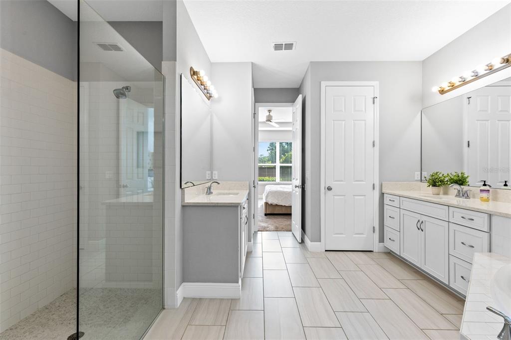 The primary suite is a true retreat, complete with generous closet space and a beautifully appointed en-suite bath featuring dual vanities, a walk-in shower with a solid glass wall, and a stylish soaking tub. All additional bedrooms are well-sized with ample storage and large closets.