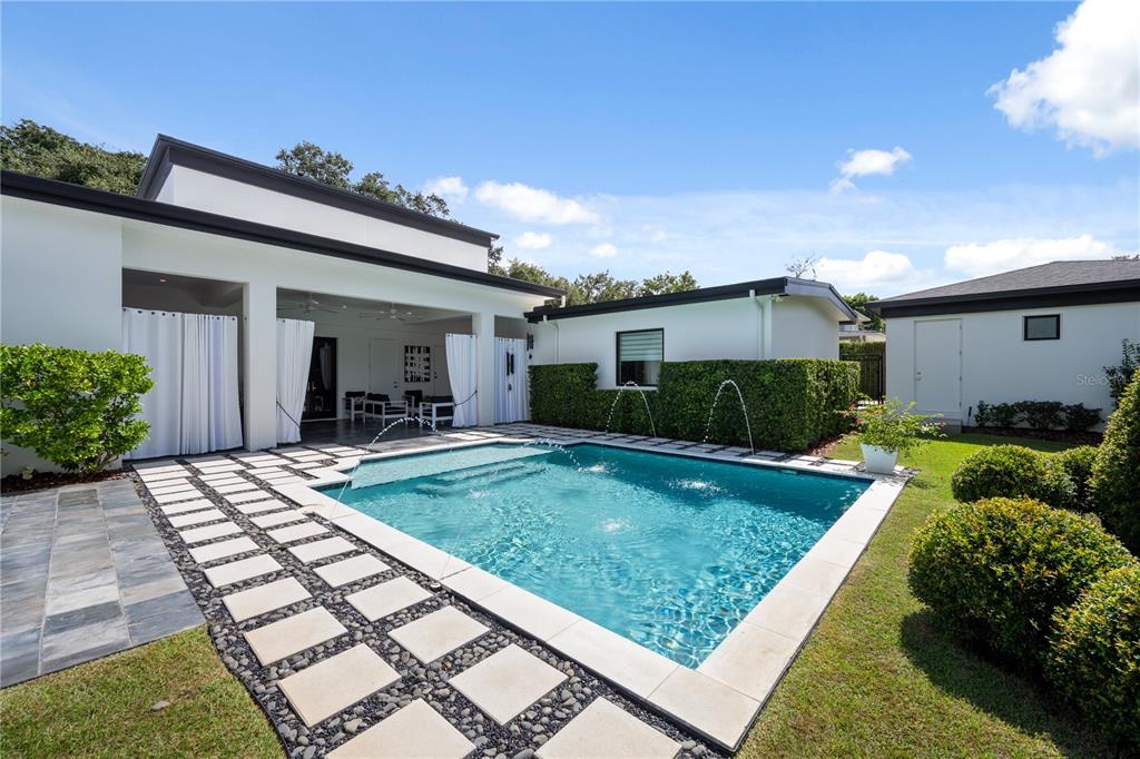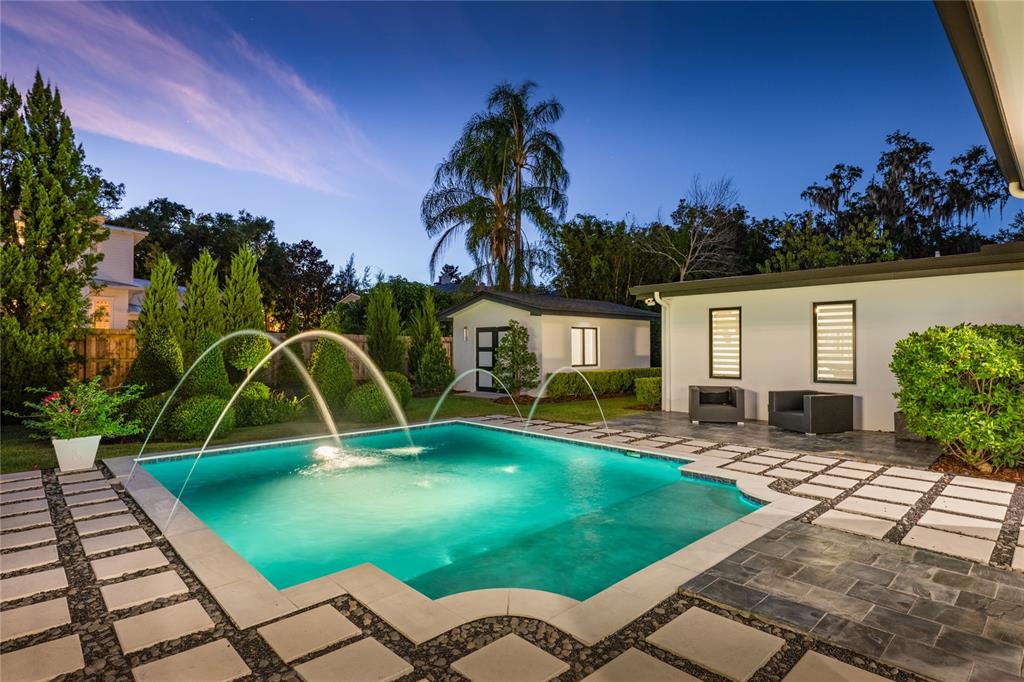 Just steps from the charm and energy of Park Avenue, this exceptional Winter Park residence was completely rebuilt in 2018 by renowned custom builder Posada Homes, member of the elite Master Custom Builders Council. Offering a rare blend of modern design, crisp architectural lines, and timeless elegance, on an expansive 0.39-acre lot along one of Winter Park’s most picturesque tree-lined streets. The home immediately captivates with its refined architecture and beautifully manicured grounds. Inside, sunlight streams through expansive windows, illuminating hardwood flooring, intricate millwork, and thoughtfully curated finishes that reflect the craftsmanship of a true custom build. Just off the foyer, a hidden wine room provides a sophisticated surprise, perfect for those who love to entertain. At the center of the home is the chef’s kitchen designed for both beauty and functionality. Outfitted with premium Thermador appliances, sleek quartz countertops, a generous center island, and custom cabinetry, the kitchen flows effortlessly into the expansive great room where high ceilings, designer lighting, and elegant architectural details create an atmosphere that is both inviting and refined. Tucked away for privacy, the primary suite is positioned just off a luxurious family room featuring custom built-ins and a gas fireplace. The primary suite itself is a true sanctuary, complete with a sitting area, private coffee bar, and a spa-inspired bath featuring dual vanities, a soaking tub, and an oversized walk-in shower. Rarely found in Winter Park, all bedrooms are conveniently located on one level, including two primary suites. The home offers seamless livability without sacrificing architectural interest or sophistication. Upstairs, a private office, half bath, and bonus room provide the perfect space for work, media, recreation, or relaxation. Outdoors, the home transforms into a private resort-style retreat. A covered lanai overlooks the sparkling pool and expansive grounds, creating the ideal setting for entertaining or quiet evenings at home. Adding even more flexibility, a 252-square-foot detached studio currently functions as a gym but could easily become a summer kitchen cabana, guest retreat, or art studio. Located within walking distance of Park Avenue’s boutiques, restaurants, and cafĂ©s, and just moments from Rollins College and the Winter Park Chain of Lakes, this residence embodies luxury living at its finest. Don’t miss this rare opportunity to own one of Winter Park’s most outstanding homes.
