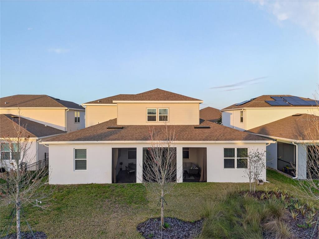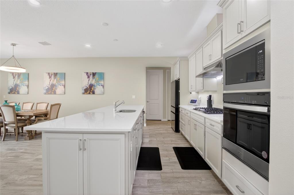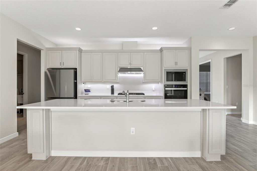 This award winning floor plan offers 4 bedrooms, a flex room, 3.5 bathrooms, a 3-car garage, and a private backyard oasis. The open-concept layout seamlessly connects the kitchen, café, and gathering room, highlighted by pocket sliding glass doors that bring in abundant natural light. The chef’s kitchen features KitchenAid stainless steel appliances, natural gas cooktop, quartz countertops, tile backsplash, a whole house water filtration system and soft-close cabinetry.