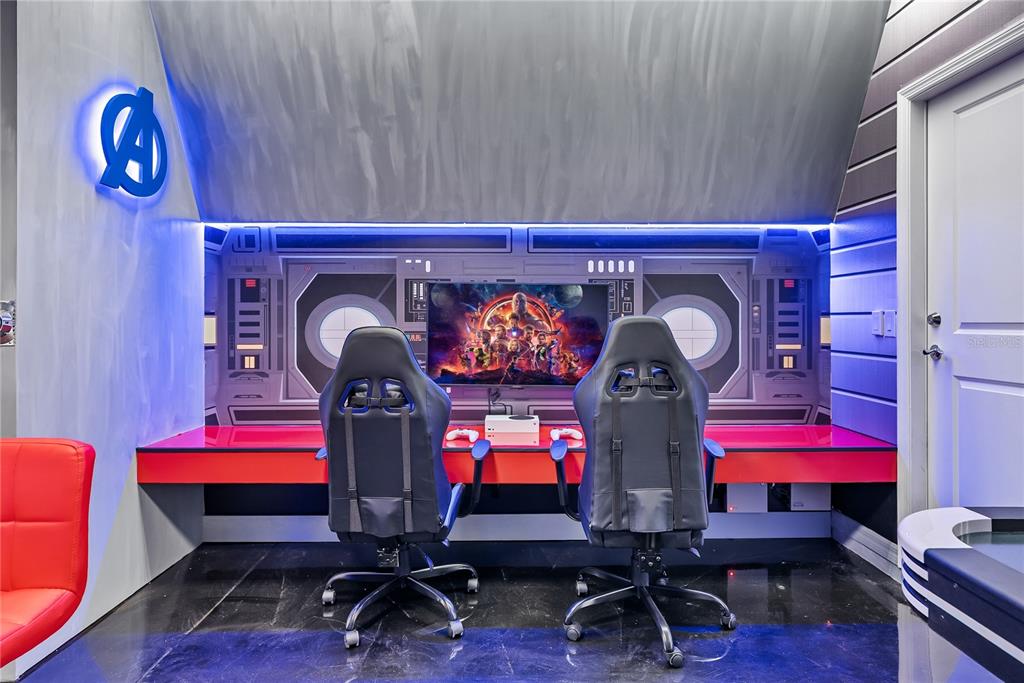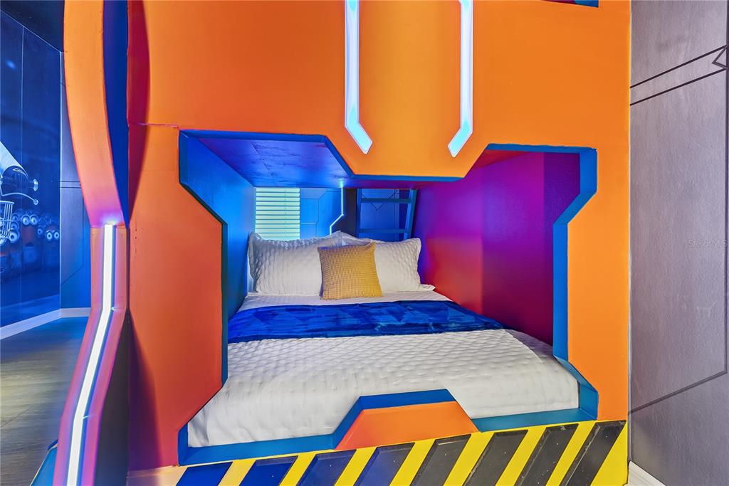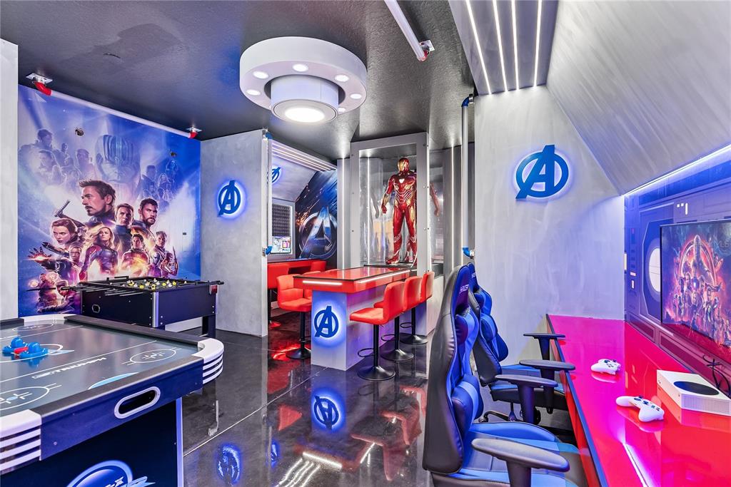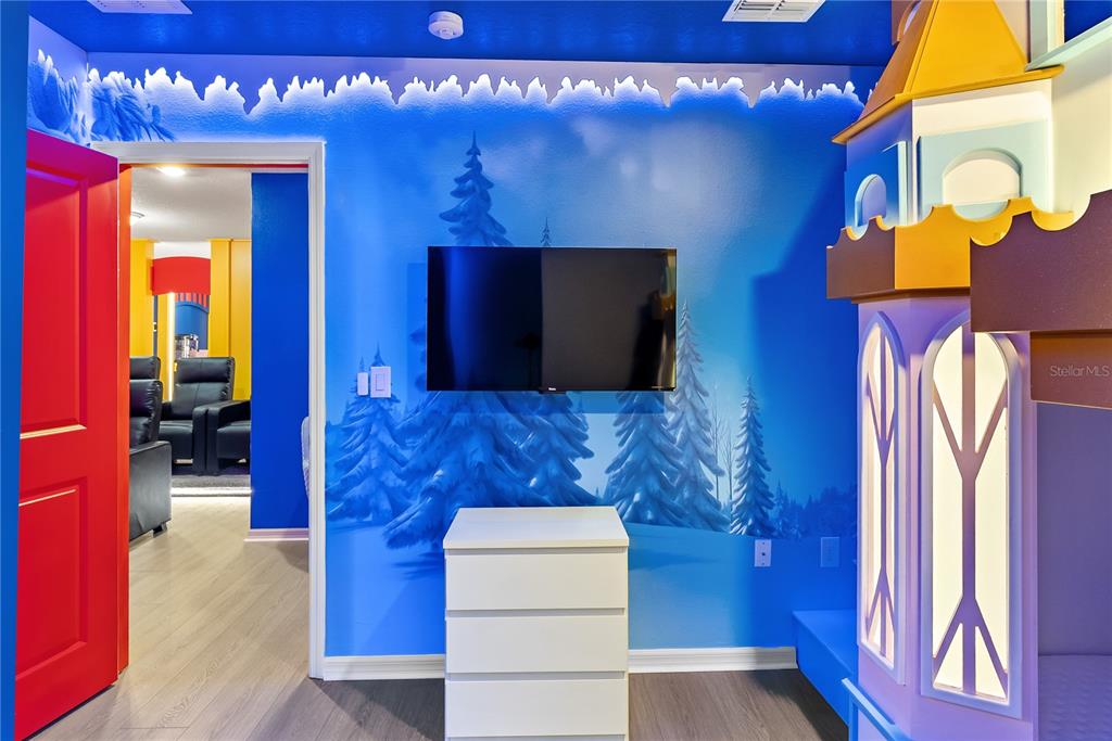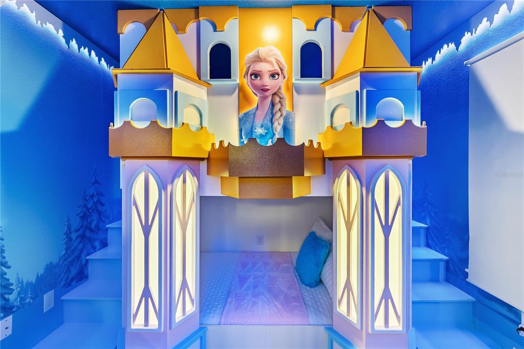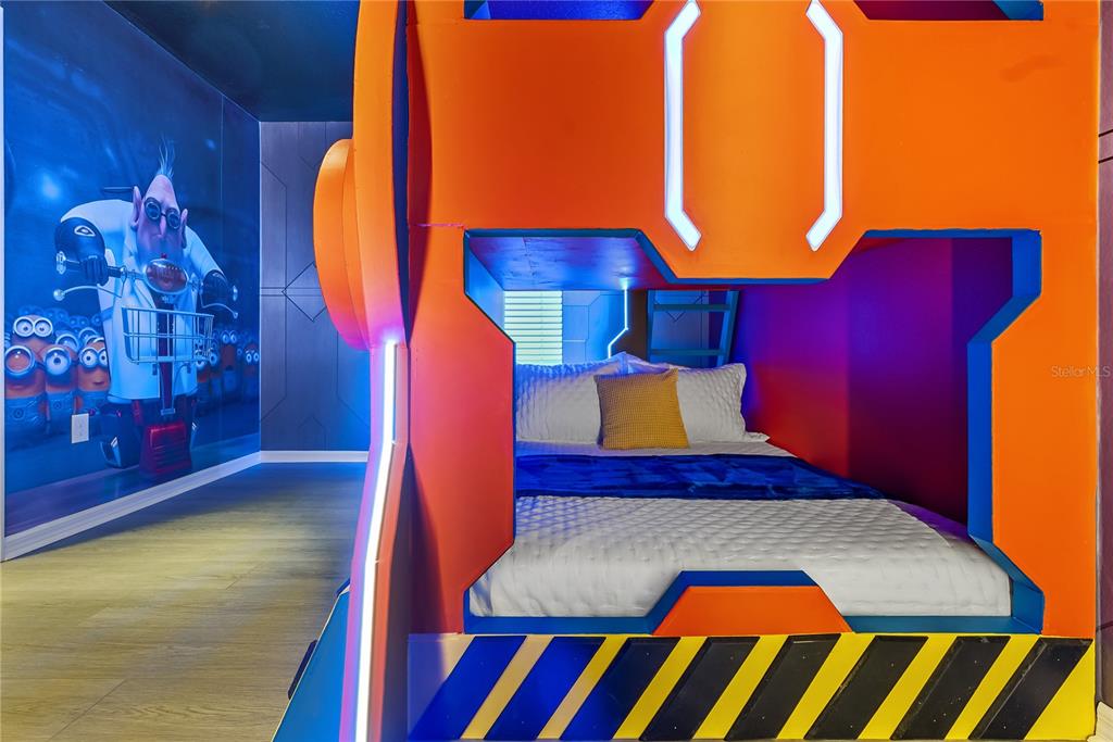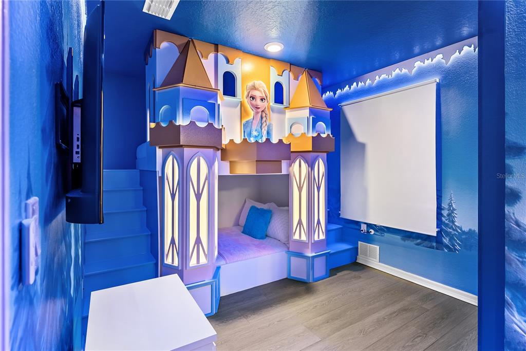 Multiple Disney-themed bedrooms create a magical and immersive experience, making this home exceptionally attractive in the vacation rental market. Entertainment is taken to the next level with a dedicated game room, a private home theater, and a custom-built indoor slide — a standout feature that enhances guest appeal and booking potential.