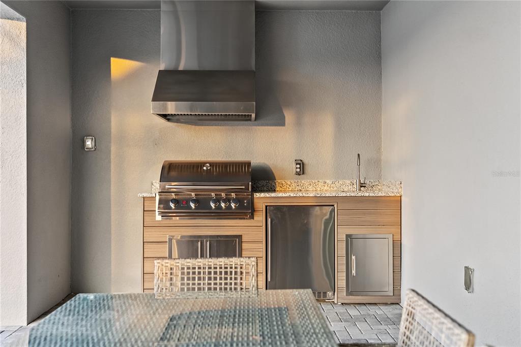 Step outside to your private screened-in pool and spa, complete with a child safety fence and covered lanai, offering the perfect environment for relaxing afternoons or evening entertainment under the Florida sun.