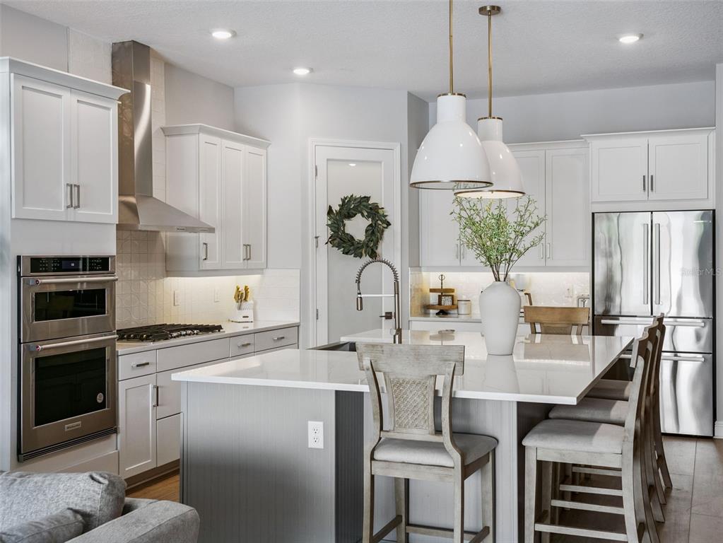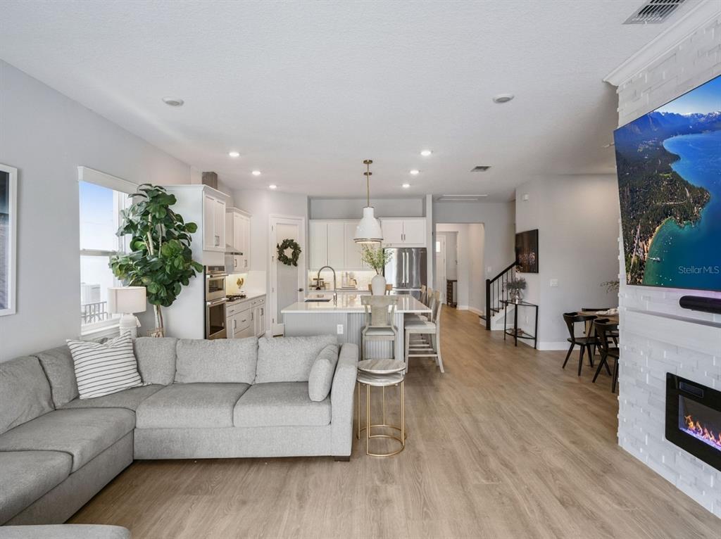 Set behind the gates of the exclusive Bella Collina Golf Club, this GOLF COURSE FRONTAGE estate is a statement of timeless elegance and effortless Florida luxury. Surrounded by rolling hills and manicured landscapes, this exceptional residence offers a rare opportunity to experience one of Central Florida’s most prestigious private communities. With over $100,000 worth of upgrades, the home unfolds with a sophisticated open-concept design, where refined finishes and thoughtful details create a warm yet elevated atmosphere. The living room serves as a striking centerpiece, anchored by a custom-built electric fireplace and textured stone feature wall – perfectly blending modern design with inviting comfort. Natural light pours through expansive windows and sliding glass doors which open completely, enhancing the home’s airy, seamless flow. The kitchen is equally impressive appointed with sleek quartz countertops, a Bosch refrigerator, hooded gas range, and built in microwave and oven, abundant cabinetry, and a design that caters beautifully to both intimate gatherings and grand entertaining. The primary suite is a true retreat, featuring two expansive custom walk-in closets, a custom-built electric fireplace and textured feature wall, and a serene ambiance designed for rest and rejuvenation. Beyond the interiors, the home’s outdoor living space transforms into a private resort-style sanctuary with its custom built in outdoor kitchen. An extended paver patio frames a beautifully designed pool, complete with a remote-controlled system for effortless enjoyment. Whether hosting sunset gatherings or enjoying a quiet morning swim, the setting is enhanced by lush privacy hedges that create a tranquil, secluded backdrop. Every detail has been curated to deliver both luxury and relaxation in equal measure. Additional enhancements include epoxy-finished garage floors and custom closet systems throughout. Bella Collina offers a lifestyle unlike any other, with a Sir Nick Faldo-designed championship golf course, a 350-acre spring-fed lake, and a breathtaking 75,000-square-foot clubhouse. Residents enjoy access to Har-Tru tennis courts, a state-of-the-art fitness center, full-service spa, resort-style pool with lap lanes and poolside service, scenic walking trails, and exceptional dining experiences. Ideally located just 25 minutes from downtown Orlando and 30 minutes from world-famous attractions, with easy access to major highways and minutes from Montverde Academy, this residence offers both privacy and convenience in one extraordinary setting. This is more than a home – it is a lifestyle defined by beauty, exclusivity, and distinction.