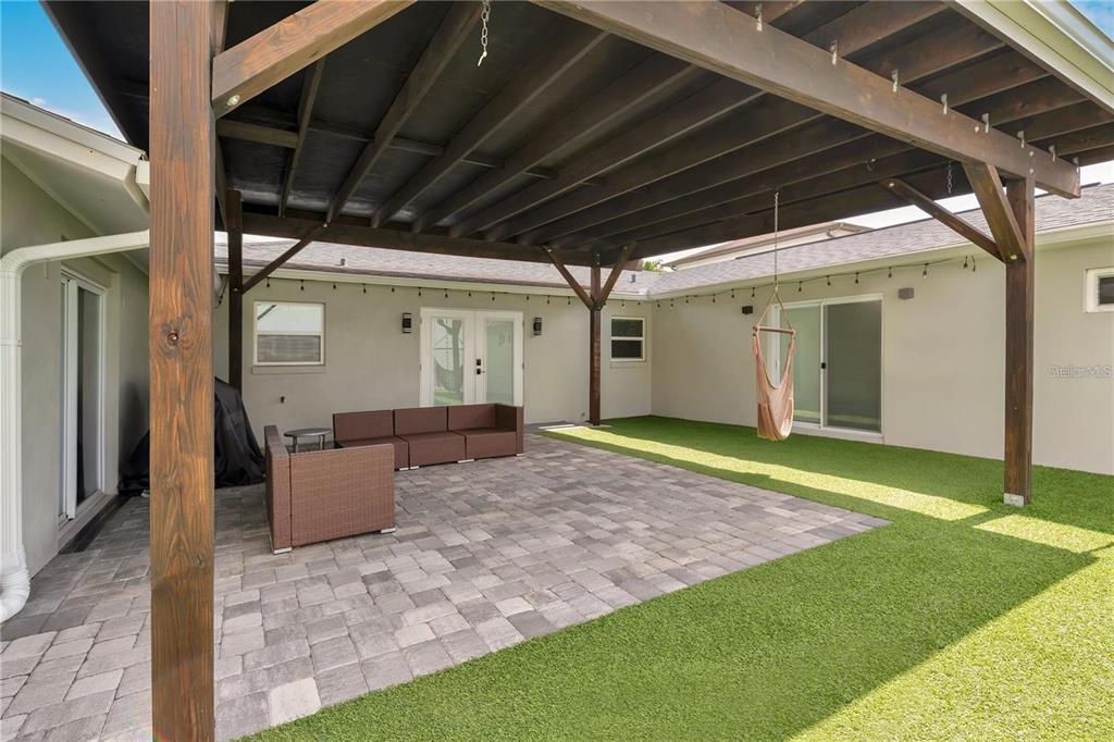 A one-of-a-kind courtyard home in the heart of College Park with rare architecture, complete privacy, and beautifully designed indoor–outdoor living. This U-shaped single-story residence wraps around a serene central courtyard and offers 4 bedrooms, a dedicated office, and 3 full bathrooms, creating an effortless blend of charm, style, and modern functionality. Step inside to bright, open living spaces filled with natural light and designer finishes. The chef’s kitchen features a massive island, exposed brick accents, double wine fridge, and floor-to-ceiling cabinetry, all flowing seamlessly into the living and dining areas. The expansive primary suite feels like its own retreat with a private HVAC system, tray ceiling, walk-in closet, and spa-inspired bath. A separate office/flex room provides the perfect space for working from home, studying, or quiet relaxation. A private guest suite sits above the oversized 2-car garage which is ideal for extended family, visitors, or a peaceful creative workspace offering comfort and separation while remaining connected to the home’s outdoor living areas. At the heart of the residence, the resort-style courtyard delivers true Florida living with a modern pergola, hammock swing, fire pit lounge, paver patio, and year-round low-maintenance turf. Fully fenced and thoughtfully designed, it’s the perfect setting for both quiet mornings and evening entertaining. An added advantage of this property is its rare R-3A zoning, which is uncommon for single-family homes in College Park. This unique designation provides valuable long-term flexibility for future use while the home functions beautifully today as a private single-family retreat. Located on a quiet, tree-lined street just minutes from Edgewater Drive, AdventHealth, Downtown Orlando, Ivanhoe Village, and The Packing District, this home offers an unmatched combination of privacy, flexibility, and walkable convenience. Homes with this level of character and indoor–outdoor flow rarely become available in College Park.