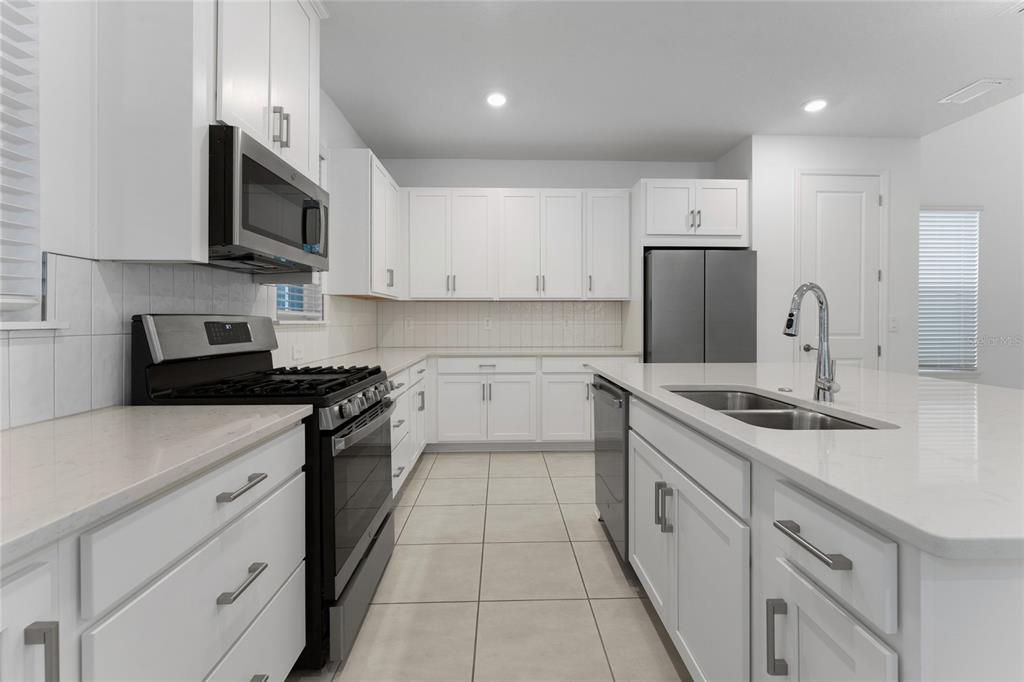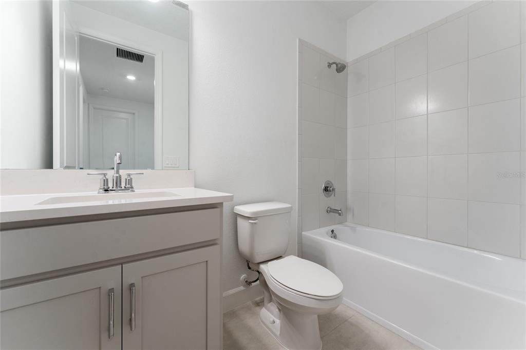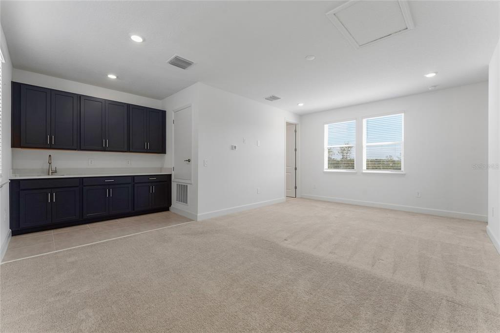 Move right into this beautiful Baldwin model in Harvest at Ovation, where modern design, spacious living, and an unbeatable location come together in one exceptional home. Step inside this charming residence and discover a welcoming layout designed for everyday comfort. Just off the foyer, a private secondary bedroom suite features its own full bathroom and a spacious storage closet, perfect for guests or multigenerational living. A dedicated home office with elegant French doors provides the ideal space to work comfortably from home. The formal dining room flows effortlessly into the impressive great room with soaring ceilings and into the designer kitchen, where quartz countertops, a large center island, and a casual dining area create the perfect setting for both daily living and entertaining. Upstairs, the exceptional primary suite features an impressive en-suite bath and a large walk-in closet. Two additional bedrooms, a full bathroom, and a conveniently located laundry room complete the second floor. At the back of the home, a sunny covered lanai invites you to relax outdoors and provides convenient access to the two-car garage. Above the garage, a spacious game room with a full bathroom and wet bar offers flexible living space ideal for entertaining, a media room, or a private guest retreat. Harvest at Ovation offers planned community amenities including a resort-style pool and cabana, Butterfly Garden, Nature Play Space, dog park, and scenic walking trails. Ideally located just minutes from Walt Disney World, Disney Springs, Flamingo Crossings, excellent restaurants, shopping, schools, Hospitals and major highways, this home offers the perfect balance of convenience and lifestyle.