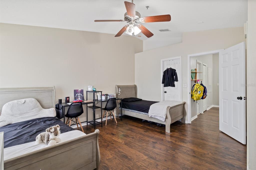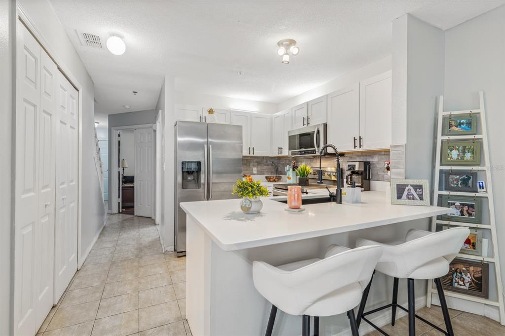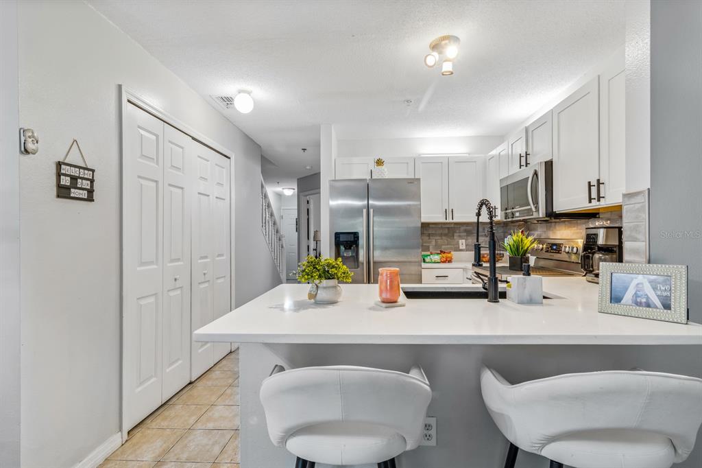 Whether you live here year-round or use it as your Florida escape, this property offers the best of both worlds, personal enjoyment and rental income potential when you’re away. Welcome to this beautifully maintained and fully upgraded townhome in the heart of Kissimmee, located in the quiet, gated community of Windsor Oaks. This spacious 3-bedroom, 2.5-bath home features a flexible layout with two master suites upstairs and a third bedroom on the main level that can also serve as a home office, den, or gym. Major improvements give this home incredible value and peace of mind: the roof was replaced just 8 months ago, the A/C is only 2 years old, the water heater is brand new, the sliding glass door recently installed new, and all appliances including washer and dryer are included.You’ll find a bright and inviting open-concept living and dining area that flows seamlessly into the kitchen. The kitchen has been fully upgraded with new cabinets, modern fixtures, a farmhouse sink, quartz countertops with a beautiful backsplash, and a new garbage disposal. All bathrooms feature new cabinetry and fixtures, while the upstairs and bedrooms are finished with new laminate flooring.