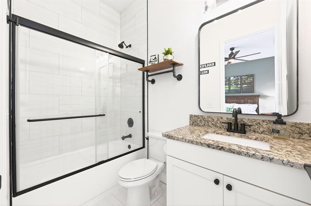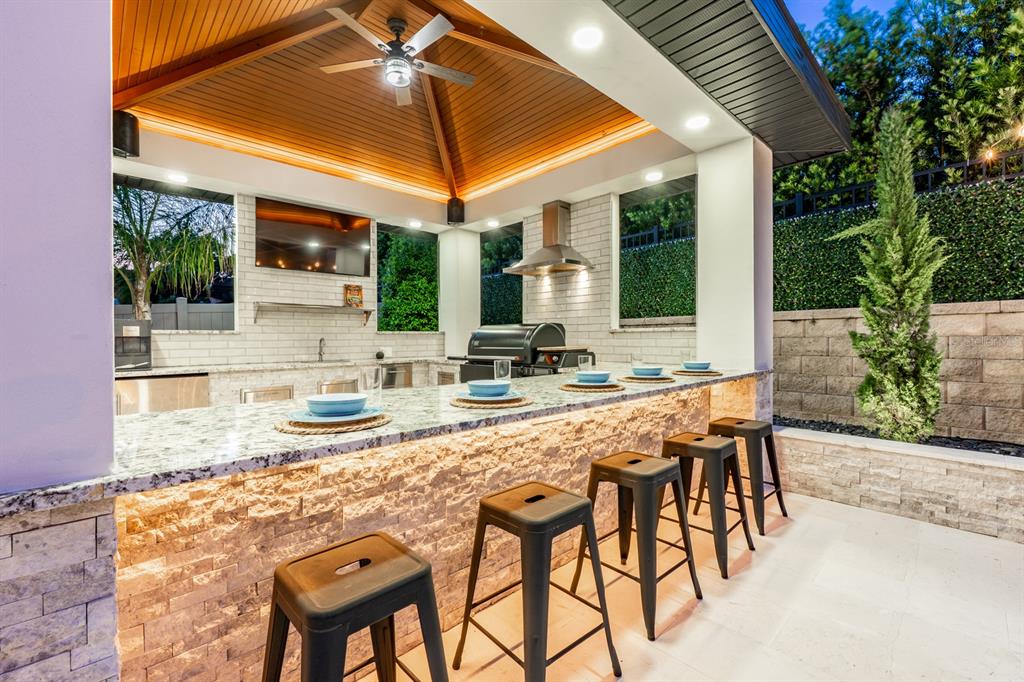 The SPLIT BEDROOM floor plan offers privacy, with a huge PRIMARY SUITE that feels like a retreat, complete with a SITTING AREA, abundant natural light, and a beautifully REMODELED EN-SUITE BATH. Additional bathrooms have also been thoughtfully updated, and the home features CUSTOM BUILT-IN SHELVING, DESKS, and a FLEX SPACE along with CLOSET ORGANIZERS, PLANTATION SHUTTERS throughout, and ample storage at every turn. Out back is where this home truly shines. Situated on a spacious .25 ACRE CORNER LOT, the private backyard oasis is built for both entertaining and unwinding. A CUSTOM LOUNGE WATER FEATURE seats 13 with LED lighting and a cascading waterfall and serves as a one-of-a-kind centerpiece. The POOL with SUN SHELF invites all-day relaxation and the stunning LIMESTONE TILE pool deck and patio create a resort-quality finish underfoot. The fully equipped OUTDOOR KITCHEN features GRANITE COUNTERTOPS, a top-of-the-line TRAEGER GRILL, convection, outdoor fridge and pull-outs, and is finished beautifully for both form and function. BUILT-IN FIRE PIT SEATING, Wi-Fi OUTDOOR SPEAKERS, and a CUSTOM PUTT PUTT AREA round out an outdoor experience you simply will not find anywhere else. LANDSCAPE LIGHTING illuminates the trees, walkways, and home exterior for stunning evening ambiance, and the fully fenced yard expanded to the property line maximizes every inch of usable space. The home also features OWNED SOLAR PANELS with no payment, an EV CHARGER in the garage, and overhead garage storage racks providing all the practical upgrades that make daily life easier and more efficient. Located in a vibrant LAKE COMMUNITY centered around SKIABLE JOHNS LAKE, residents enjoy well-maintained common areas, a community pool, park and playground, and easy access to the Johns Lake boat ramp just minutes away. Zoned for “A” RATED Grassy Lake Elementary and conveniently located near SR 50 and the Florida Turnpike, you are just a short drive to shopping, dining, entertainment, and the entire Clermont Chain of Lakes. This is more than a home. It is a lifestyle. Thoughtfully designed, move-in ready, and filled with upgrades at every turn, this Clermont pool home delivers comfortable luxury with no detail missed!