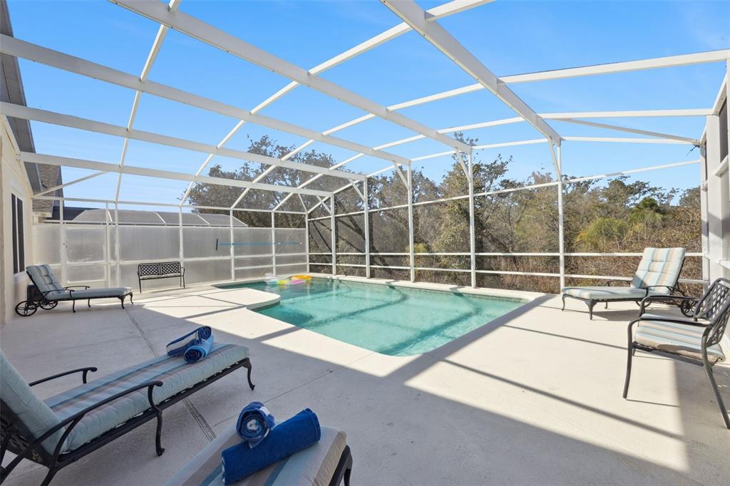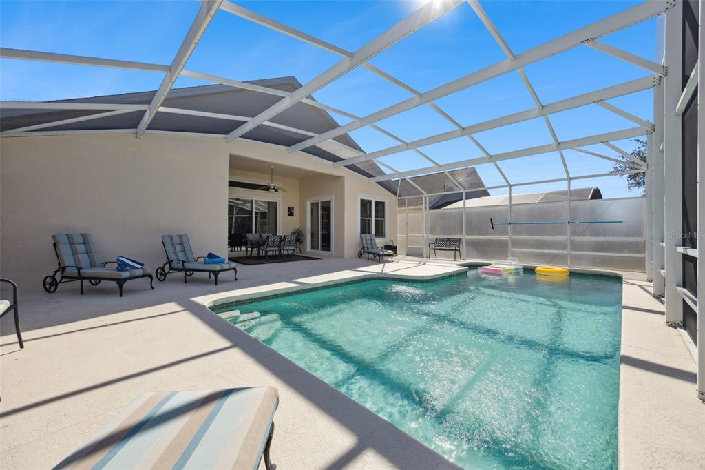 Out onto the pool area, the shady lanai has plenty of room for alfresco dining. It is just the most stunning spot to sip a pre-dinner aperitif and watch the sun set on another day in your own Floridian paradise. The sparkling pool is very inviting and there is lots of room for sun loungers on the pool deck. This home is being sold furnished as seen.