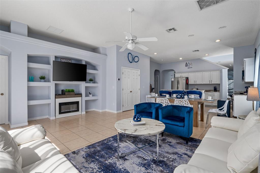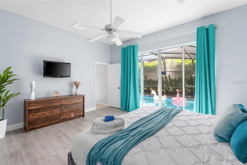 TURNKEY ~ FULLY FURNISHED and already producing income! This Glenbrook POOL HOME is ready to go as a short-term rental or your own Central Florida vacation retreat. Major recent updates deliver peace of mind and a fresh, modern feel throughout. **IN 2025: the pool equipment was upgraded with a new Pentair variable speed pool pump and Pentair WiFi automated control system for easy remote management. **IN 2024: the home received extensive upgrades including FRESH INTERIOR PAINT, refreshed kitchen and bathroom cabinetry, GRANITE COUNTERTOPS in the kitchen and all bathrooms, LUXURY VINYL PLANK FLOORING upstairs and in the bedrooms, ALL NEW FURNISHINGS, STAINLESS STEEL APPLIANCES, new washer and dryer, updated LED pool light and skimmer, a fully RESURFACED & RETILED POOL, new pool screens, and the garage conversion into a private THEATER ROOM. Major systems have also been addressed with a NEW ROOF (2023) and NEW A/C SYSTEMS (2024). Designed with short-term rental success in mind, this home offers well planned spaces for hosting guests and creating memorable vacation experiences. The screened private pool and spa serve as the centerpiece of the outdoor space, perfect for relaxing after a day at the parks. Inside, guests can enjoy multiple entertainment areas including a dedicated theater room and game space, along with thoughtfully themed bedrooms that enhance the vacation atmosphere. The main floor features an OPEN & WELCOMING LAYOUT with living, dining, kitchen and family room areas designed for gathering. A spacious en-suite bedroom with direct access to the screened pool and spa offers convenience for guests who prefer a FIRST FLOOR RETREAT, while an additional guest bedroom and full bath are also located downstairs. Upstairs, the remaining bedrooms provide comfortable accommodations for larger groups, including a SECOND BEDROOM SUITE with a large WALK-IN CLOSET, plus two additional guest bedrooms and another full bath, giving everyone space to spread out. Located in the Glenbrook community of Clermont, this property benefits from proximity to US Hwy 27, shopping, dining, and Central Florida’s world-famous theme parks, making it an attractive destination for vacation renters year-round. Community AMENITIES add even more appeal for guests and owners alike! With proven rental income, stylish furnishings, and extensive recent updates, this property is truly MOVE-IN & RENTAL READY – whether you are looking for a personal vacation getaway, an investment property, or both. Schedule a tour today and discover the possibilities on Fresh Meadow Drive!