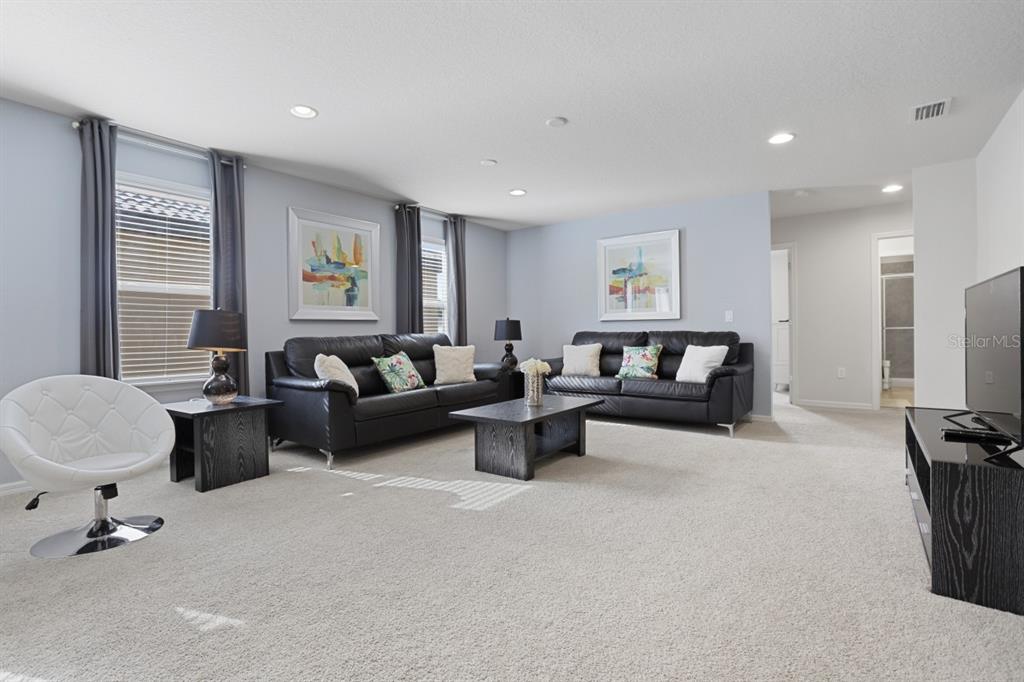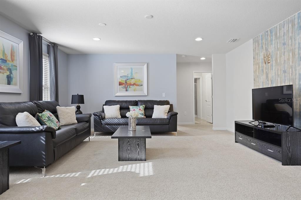 Luxurious 7-Bed, 5.5-Bath Retreat in Windsor at Westside! Nestled on a premium lot in the coveted Windsor at Westside gated community, this fully furnished 7-bedroom, 5.5-bathroom home is perfect for vacations, primary living, or investment, just minutes from Disney. Enjoy a spacious open floor plan with owner’s suites on both floors, a gourmet kitchen featuring stainless steel appliances, 42-inch dark wood cabinets, stone countertops, and a large breakfast bar. The living room seamlessly connects to a vast covered lanai and heated pool with a soothing spa, overlooking a serene conservation area, perfect for soaking up Florida’s sunshine and stunning sunsets. Residents gain access to resort-style amenities, including a clubhouse, heated pool, lazy river, water playground, fitness center, sports courts, games room, on-site store, restaurant, and bar.