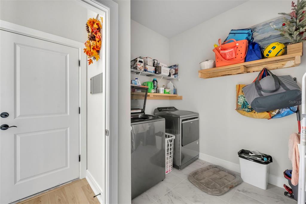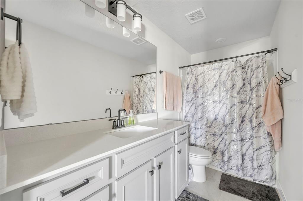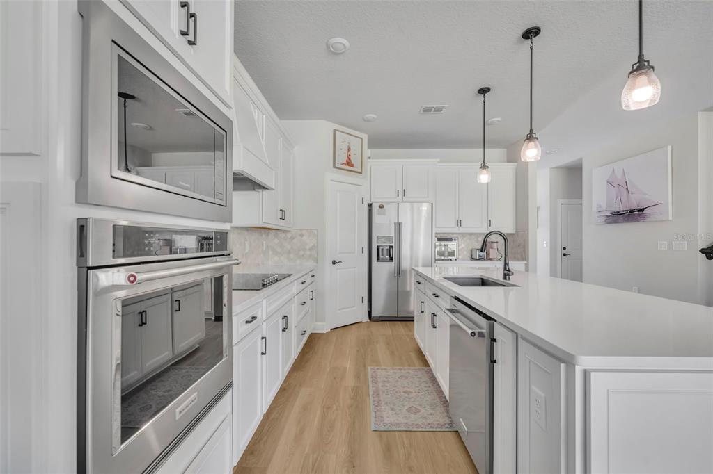 The open-concept kitchen is a chef’s dream, showcasing top-of-the-line quartz countertops, a stylish backsplash, 42” cabinets, stainless steel appliances, and a large island with seating for four, highlighted by modern farmhouse pendant lighting. The main living area flows seamlessly, providing the perfect setting for entertaining friends and family. The first-floor Master Suite offers a serene retreat, featuring a glarge shower, walk-in closet, and double vanity. Upstairs, the spacious loft is ideal for a home theater and game room combination, while three additional bedrooms provide ample space for family and guests. One bedroom includes a full en-suite bath, and the remaining two share a modern guest bathroom with double vanity and tub/shower. Thinking of entertaining outdoors? The patio has pre-built hookups for an outdoor kitchen to be installed. The garage features a dedicated 220V outlet providing flexibility for electric vehicle charging, woskshop equipment and/or additional high powered appliances.