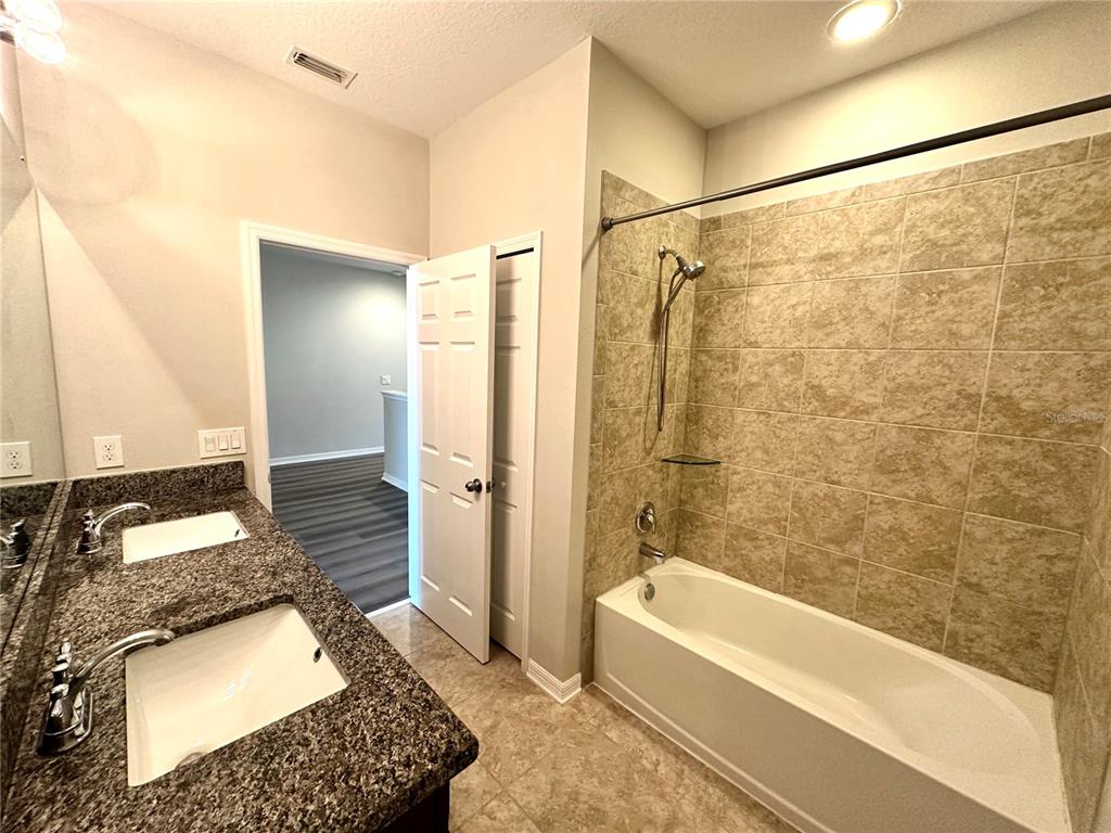 Located in the guard-gated community of Magnolia Pointe in Clermont, this elegant home offers both comfort and convenience just minutes from Costco, Publix, Walmart, Target, and downtown Clermont. The residence features 4 bedrooms, 2.5 bathrooms, and a 2-car garage, with brand-new luxury vinyl flooring throughout. A grand, high-ceiling foyer welcomes you into a spacious living area that flows seamlessly into the open kitchen, complete with granite countertops, rich wood cabinetry, and stainless-steel appliances.The first-floor primary suite provides privacy and comfort, offering dual stone-top vanities and generous walk-in closets. Upstairs, you’ll find additional bedrooms, a full bathroom, a laundry room with utility sink, and a versatile loft — perfect for a home office, media room, or play area.Enjoy resort-style living with access to the community pool, clubhouse, and private boat ramp to John’s Lake. Conveniently located near Florida’s Turnpike and Highway 50, this home combines lifestyle, location, and accessibility.