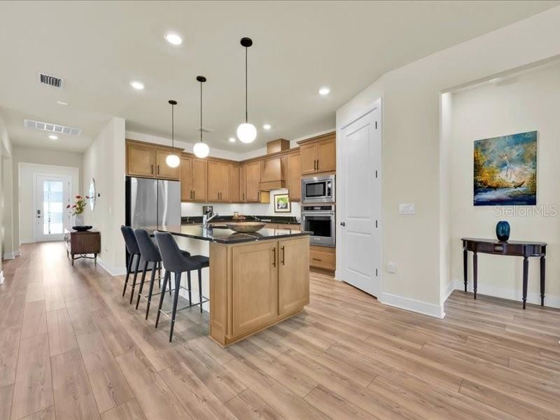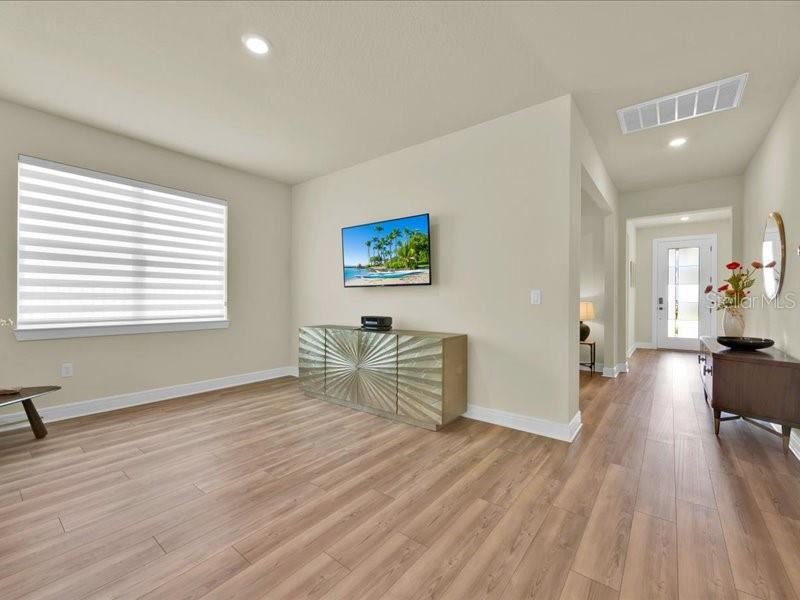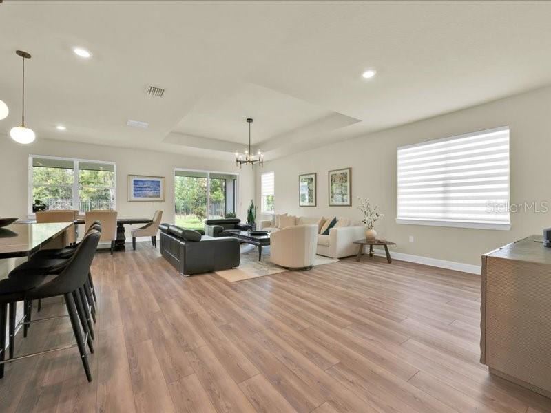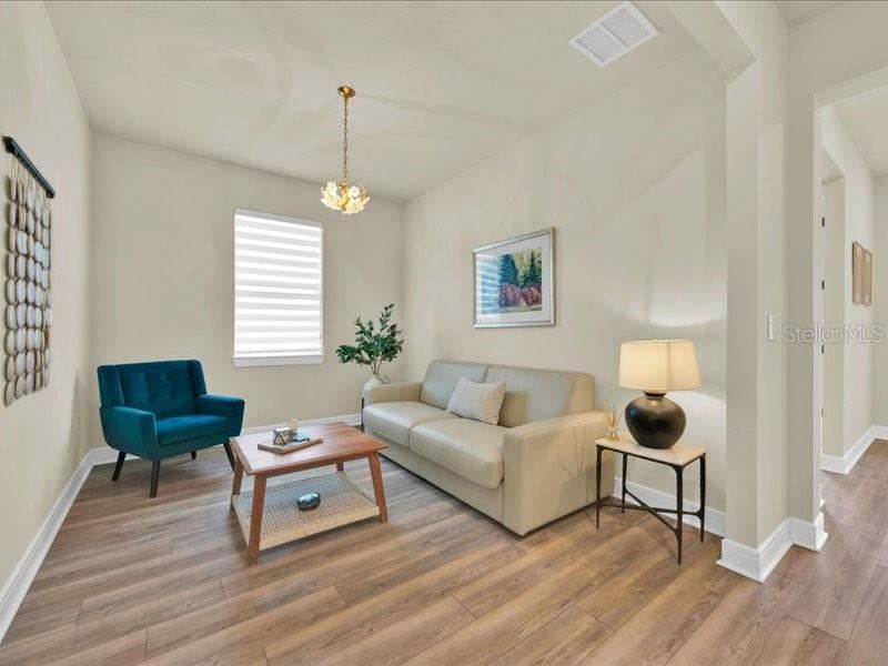 Discover this exceptional single-story home, featuring three bedrooms and a den, situated in the gated SerenoaLakes community, designed for effortless living and maximum accessibility. Enjoy ultimate privacy in a peaceful setting with no neighbors behind the house. A new road under development will soon provide quick access to Disney World, while a brand-new shopping center nearby will bring top-tier retail and dining options even closer. This home showcases a modern design, complete with numerous upgrades. It has luxury vinyl flooringthroughout, including the bedrooms, offering durability and easy maintenance. The fenced-in yard ensures securityand privacy, making it perfect for families or pets. The modern kitchen is a true showstopper, featuring high-endupgrades, sleek finishes, and ample space for cooking and entertaining. Additionally, the home is equipped withtop-quality, energy-efficient appliances that combine style and sustainability. Residents of Serenoa Lakes enjoyresort-style amenities, including a clubhouse with an activity director, a 24-hour fitness center,pool, a splash pad, playgrounds, a walking trail, a covered patio with a fireplace, and event lawns. The community also offers kayak launch and storage, picnic areas, Additional premium features include a garage with a coated floor for a polished, durable finish and a built-in electric car charger, adding functionality and value. The elegant front door, featuring glass panels, enhances the home’s curb appeal, allowing natural light to enter and creating a bright, welcoming entrance. Build above flood plain mitigation features for added safety and lower insurance cost. Don’t miss this incredible opportunity””schedule a showing today and experience this move-in-ready home for yourself!