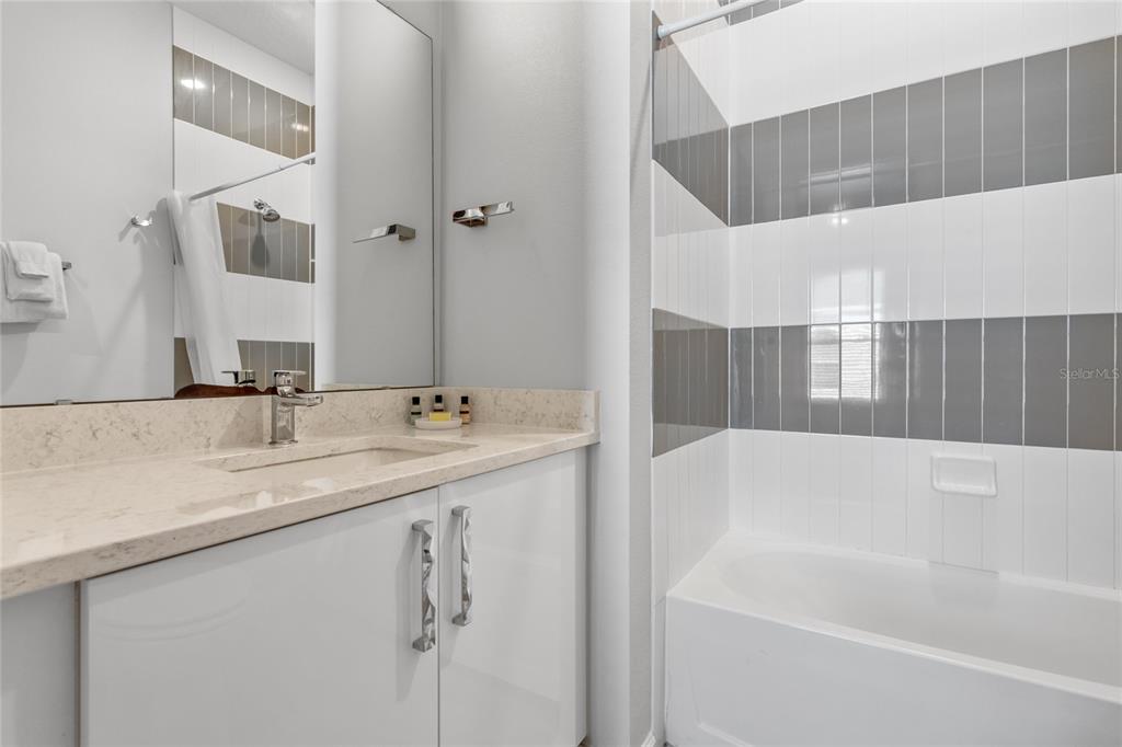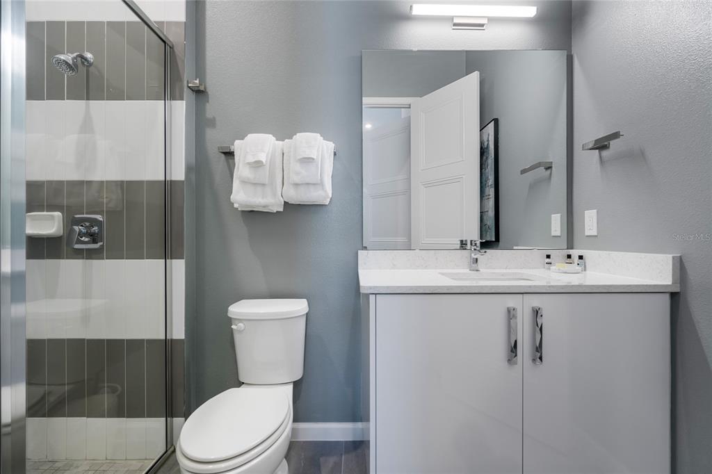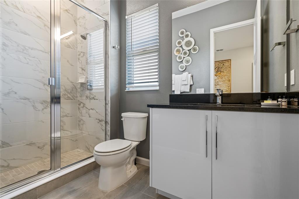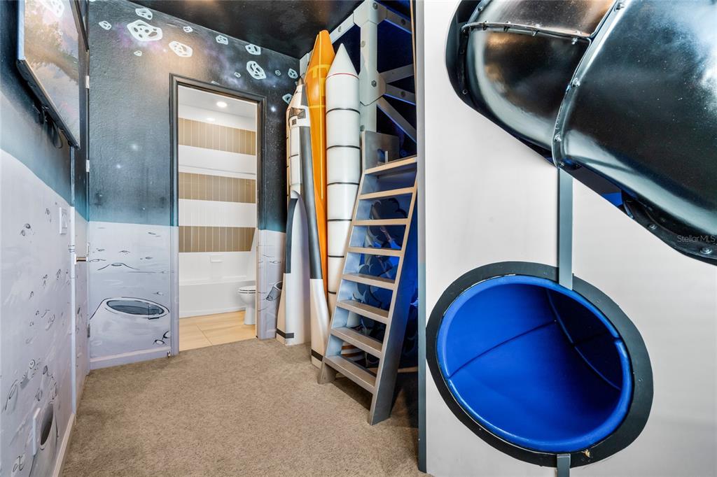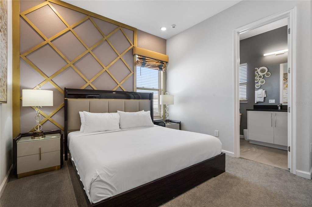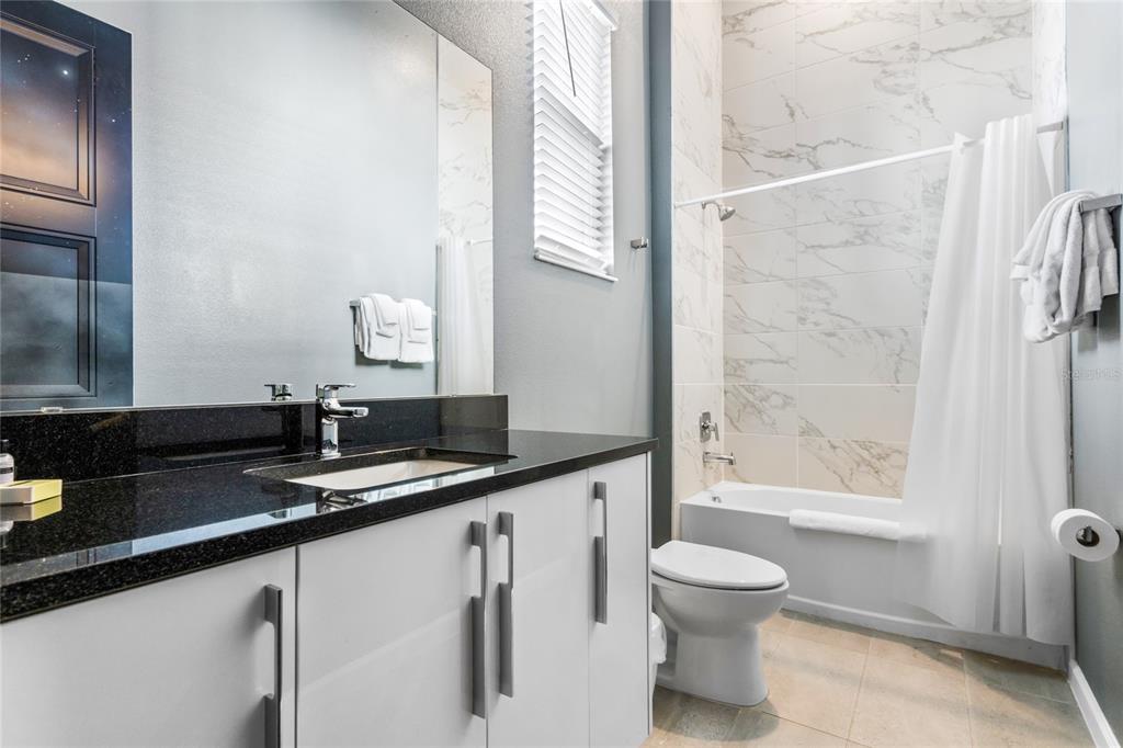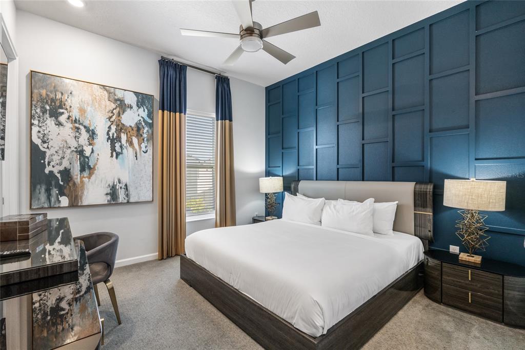 The exquisite pool home of 6542 SF at Villatel Village is truly impressive! The open concept layout with high ceilings and an abundance of natural light creates a welcoming atmosphere, the spacious great room & gourmet kitchen with a center island is perfect for gatherings. The inclusion of three Disney-themed bedrooms, a movie theater, a gym, a Pac-Man game room and a oversized loft with assortment of games and entertainment adds a delightful touch for all guests. Solterra Resort offers a clubhouse, water park with an oversized resort pool, lazy river, and water slides, tennis & basketball courts, hiking trails and more.