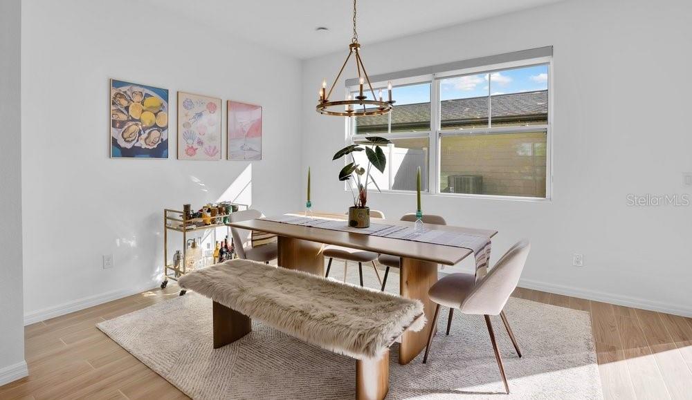 dining area overlooking the private courtyard. Quartz countertops, Stainless steel appliances and