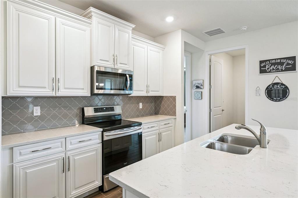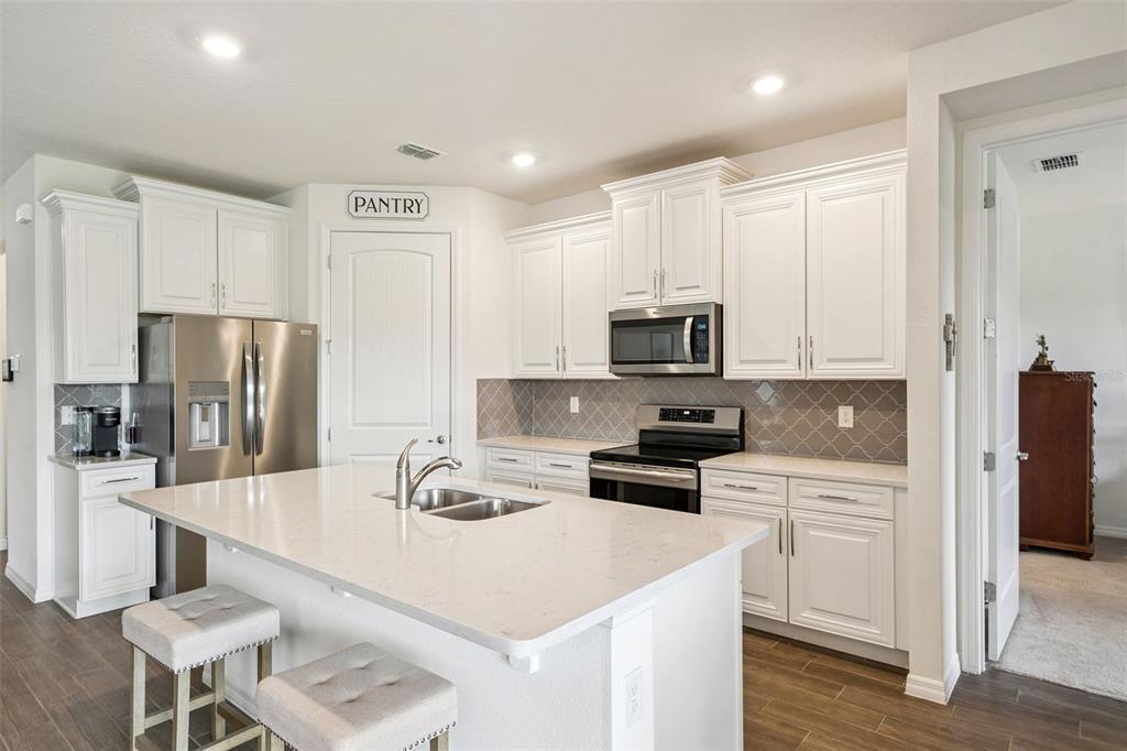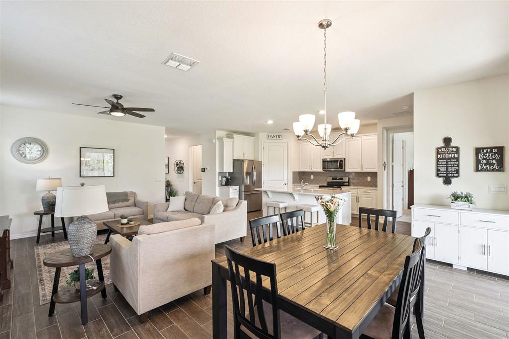 Don’t miss this GEM! Experience the perfect blend of comfort, sophistication, and thoughtful design of this highly sought-after Clifton Model. This Well -Mantained and Updated Home has a Brand NEW ROOF (2023), NEW GUTTERS Installed, (2023), NEW GARAGE DOOR and MOTOR (2023), NEW Overhead Garage STORAGE RACKS (2023), additional Built-In Garage Storage Shelving, Added Insulation in attic space for Enhanced Utility Efficiency, and Upgraded Ceiling Fans throughout, and added Rollershades on Lanai. This Floorplan Provides Open Concept Living at its BEST! Desirable features include: Wood Look Porcelain tile in all areas except bedrooms, A Chef’s Kitchen complete with Quartz Countertops, Spacious Island, 42″ ‘Soft Close’ Shaker Cabinets, and Upgraded Stainless Steel Appliances including Microwave, Induction stove, Frigidaire Gallery Fridge, and Dishwasher, perfect for entertaining a large group or casual dining. The Spacious Primary Suite offers not one but two walk-in closets, and a private ensuite with dual sinks, a walk-in shower with Niche, Built in seat, and an upgraded showerhead with adjustable hand-held feature and a private water closet. This well thought out Split floorplan offers an additional bedroom on the opposite side of the home, providing privacy for guests, and a 3rd spacious room for an office, den, or hobby space. Best of all, this Smart home offers keyless entry, a garage door entry pad, a smart-thermostat, and a doorbell camera. Residents of The Palms at Serenoa enjoy a true resort-style 55+ lifestyle with amenities including a clubhouse, Zero-Entry pool, fitness center, pickleball courts, Bocce Courts, Firepit Area, and Scenic Walking Paths, Two Dog Parks, and Much More! This community is close to Shopping, Dining, Lake Louisa State Park, and Downtown Clermont, with convenient access to Orlando attractions. The home is 17 miles from Disney World, 18 miles from Universal, 15 miles from Epcot and only 28 mins from MCO Airport! This home perfectly blends modern upgrades, low-maintenance living, and natural beauty, all ready for you to call it home. Come see it today!