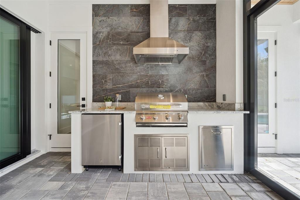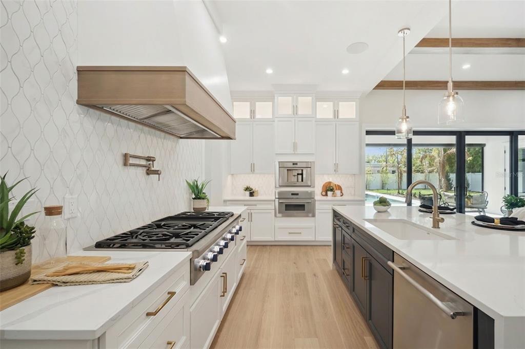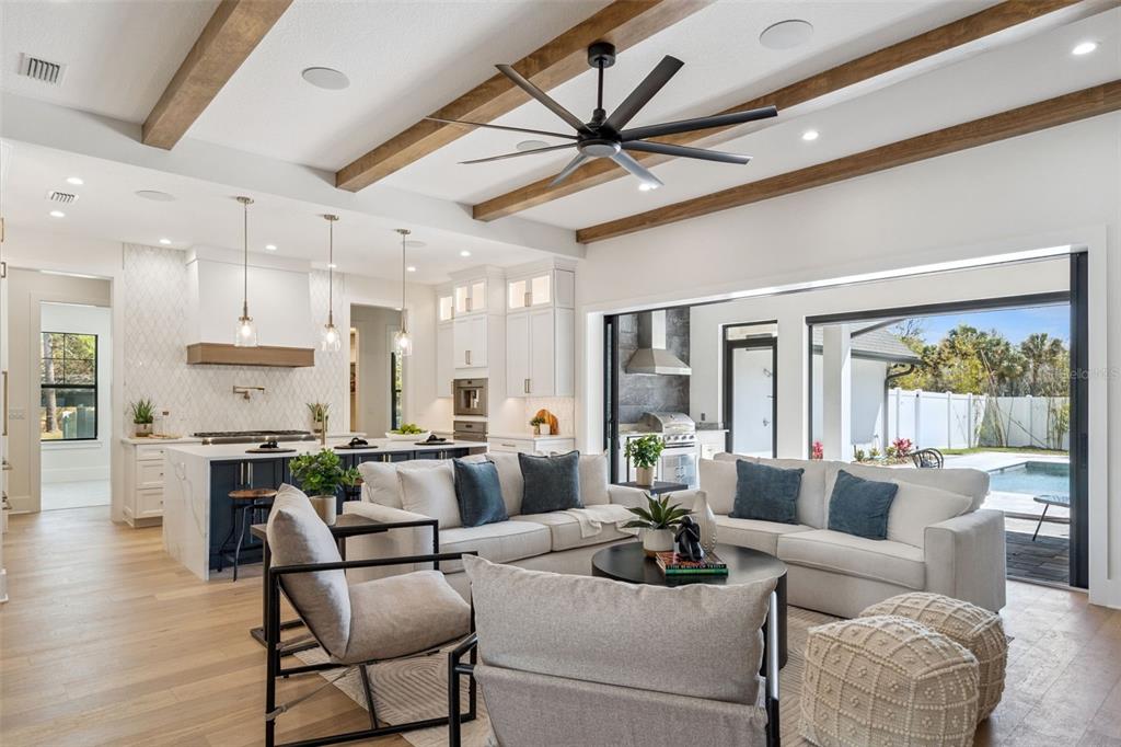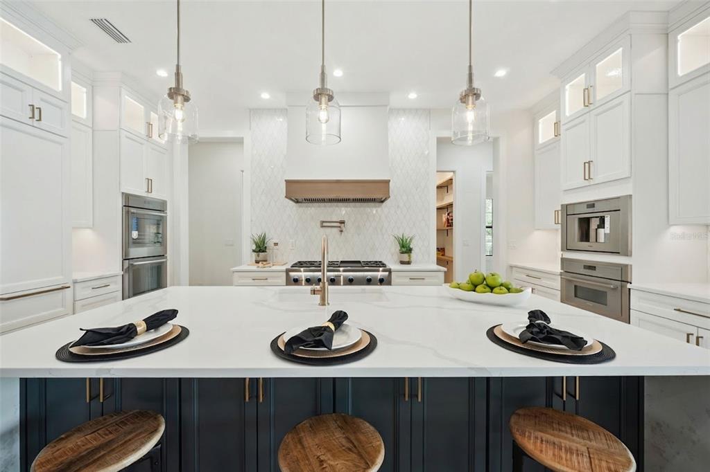 Step into this stunning West-Indies inspired luxury home crafted by Nautilus Homes, where tropical charm meets timeless elegance. An architectural masterpiece in the heart of City of Winter Park. This five-bedroom seven-bath home that includes a private in-law suite offers plenty of exquisite interior features. The home welcomes you with a beautifully designed 16 ft wide circular driveway wrapped in upgraded pavers, offering both elegance and functionality. A very rare 4-car garage in Winter Park with two in the rear and two in the front of the home. Starting with entering through massive 10 ft. double iron doors flowing into the foyer with 11ft high ceiling beginning with the flex/office room and formal dining to your left and right. Followed by entering the gallery that leads to the great room. The Chef’s Kitchen, a culinary dream featuring an oversized center island, quartz countertops throughout, custom 42″+15″ wood cabinetry, a custom walk-in pantry, and top-of-the-line Thermador professional series. That Includes a 48′ refrigerator, 48″ gas cooktop, custom hood, dishwasher, built-in microwave, double convection ovens and built in coffee station. On your way to the formal dining, you pass by the show-stopping, Tempered glass wine room. Its crystal-clear glass enclosure offers a striking view of your curated collection, while the built-in wine chiller ensures each bottle is perfectly preserved. This elegant transition creates a seamless blend of function and sophistication, setting the tone for unforgettable dining experiences just steps away. The primary suite offers tranquility peace of mind, and the primary bath has a spa-like oasis with a spacious shower stand-alone tub. Followed by a custom closet thoughtfully design with plenty of room and storage. The guest retreat area has a huge bedroom, access to a full bath including private access to the Lania and pool. Tucked away with its own private entrance attached to the rear garage, the in-law suite above the garage offers the perfect blend of comfort and independence. This thoughtfully designed space includes a full bath, a cozy living area, and a convenient space with a kitchenette—ideal for extended stays or multi-generational living. Make your way to the second floor that has 11ft ceilings as well. As you reach the top the space opens into a massive game room with a wet bar, perfect for entertainment retreat with a balcony. All second-floor bedrooms have a thoughtfully design with a full bath for privacy. As you make your way back downstairs to outside, step through the oversized sliding glass doors and into your private outdoor oasis. Effortlessly extending your living space into the open air. Just beyond, the sparkling gas heated/saltwater pool and spa framed by lush landscaping and designed for both relaxation and recreation. Also, the fully equipped summer kitchen features gas grille, beverage refrigerator and ample counter space—perfect for alfresco dining and effortless entertaining. This seamless indoor-outdoor flow creates the ultimate setting for enjoying the Florida lifestyle in style and comfort. This masterpiece is equipped with a full irrigation system around the home, exterior lighting, exterior cameras for security. Smart home system ready for lighting, music and security controlled by Control 4 system for your convenience. Interlachen Golf community less than 5 min, Phelps Park walking distance, Park Ave 10 min and restaurant and retail minutes away.