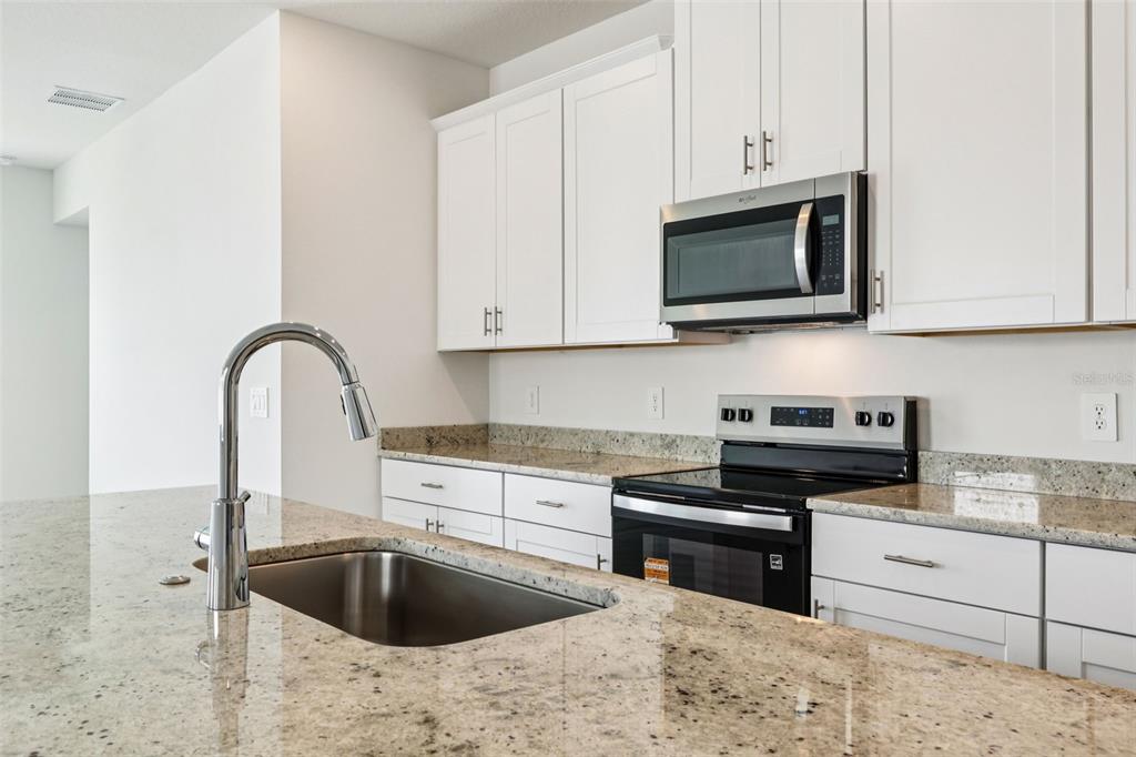 Welcome Home! Experience contemporary living in this brand-new, move-in-ready two-story corner unit townhome, featuring four bedrooms and two and a half bathrooms. This residence has been thoughtfully designed with an emphasis on style, comfort, and convenience, all while prioritizing energy efficiency. As you arrive, you’ll be greeted by the inviting curb appeal, which includes a two-car garage and a charming covered front porch. Upon entering, the impressive two-story foyer establishes a welcoming atmosphere that transitions seamlessly into a spacious dining area and great room—ideal for both daily living and effortless entertaining. The main living area boasts beautiful luxury vinyl flooring, enhancing the warm and inviting ambiance. Prepare your favorite meals in the well-appointed kitchen, which features stainless steel appliances, granite countertops, white cabinetry, and a breakfast bar for casual dining. The natural light streams through the sliding door, leading to an open paver patio—perfect for outdoor relaxation.