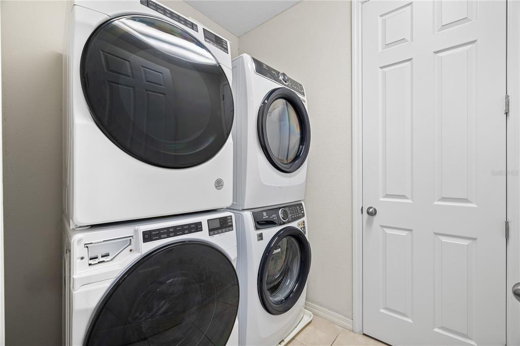 The kitchen is both stylish and functional, showcasing solid wood cabinets, stone countertops, and all appliances included, making it ready for immediate use. A dedicated laundry room comes complete with a washer and dryer, adding everyday convenience.