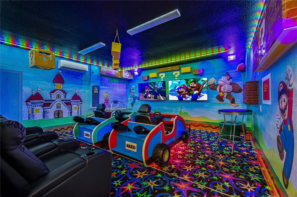 For entertainment, enjoy a beautifully designed game room, perfect for hosting guests or creating memorable family moments. Step outside to your private backyard oasis featuring a large in-ground swimming pool with a screen enclosure, ideal for enjoying Florida’s lifestyle year-round.