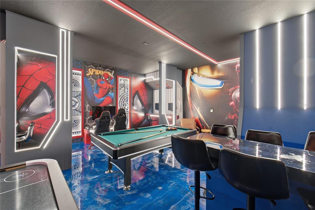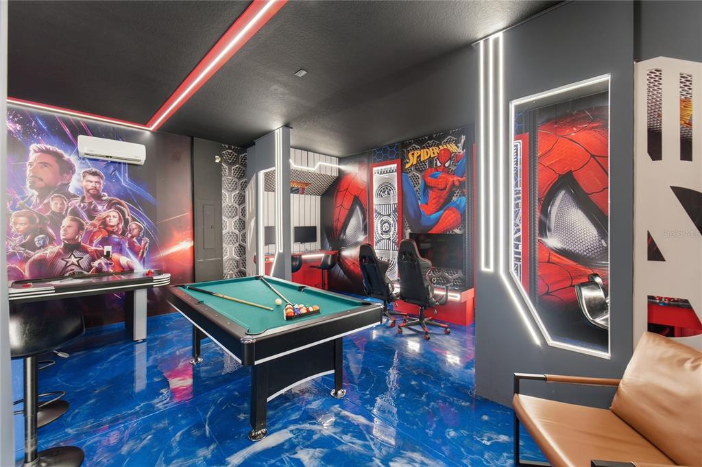 Absolutely stunning 9-bedroom, 6.5-bath home, recently remodeled and finely decorated by professional designers. Every detail has been thoughtfully updated, from themed bedrooms with modern touches to a spectacular loft featuring a private home theater. The garage has been transformed into an amazing game room, perfect for family fun and entertaining. Situated just steps from the Club House, this home offers spacious living areas, luxurious finishes, and a versatile floorplan ideal for large families, vacation stays, or short-term rental opportunities. Don’t miss the chance to experience this one-of-a-kind property in a prime Kissimmee location!