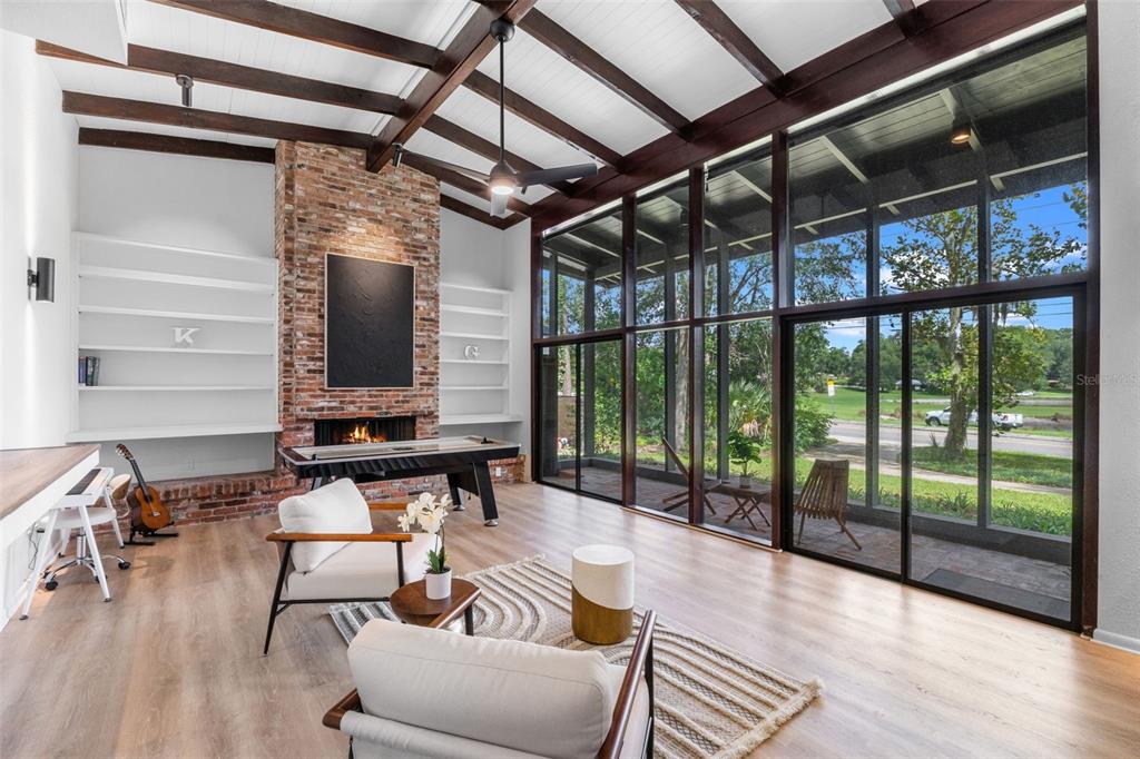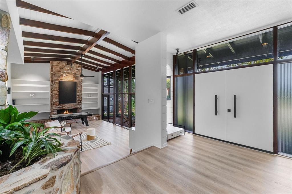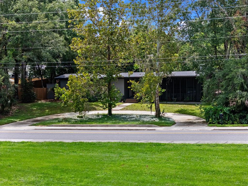 Fully remodeled mid-century modern home on a rare 0.64-acre corner homesite in Longwood’s desirable Sanlando Springs area with panoramic views of the pond and park across the street.