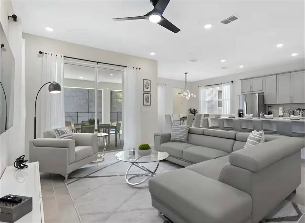 Your dream vacation rental — fully loaded and already cash-flowing. Being built in 2022, you will be fall in love with this low maintenance home. This 6-bed, 5-bath stunner in Solara Resort checks every box: fully furnished, professionally designed, and packed with future bookings that transfer at closing. Inside: double-height ceilings, an open-concept layout, a sleek chef’s kitchen, game loft, office, and large bedrooms that guests rave about. Outside: private heated pool, spa, and covered lanai. Located minutes from Disney, Solara is a top-tier short-term rental community with a full water park, resort-style pool, clubhouse, restaurant, tiki bar, gym, spa, arcade, sports courts, and more. Whether you’re an investor or buying your own escape, this is the rare property that delivers luxury and passive income from day one.