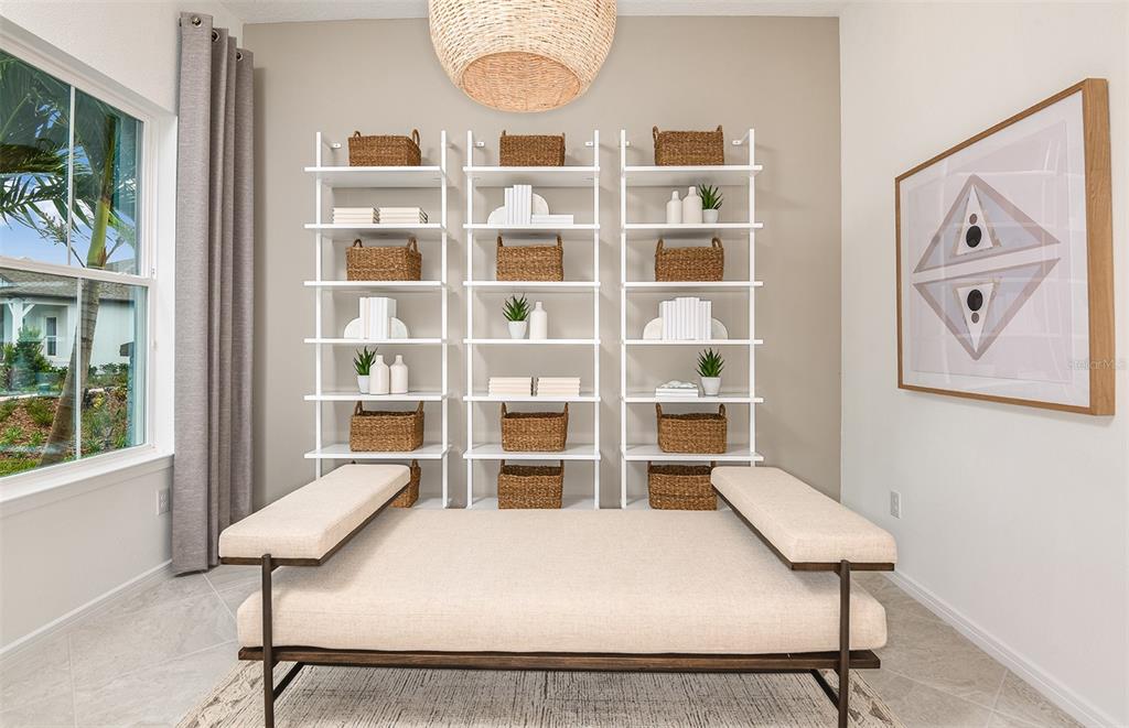 Experience the perfect blend of convenience, luxury, and elegance in this stunning one-story Mainstay home. With 2 bedrooms, an enclosed flex room, 2 bathrooms, and a 2-car garage, this home offers a thoughtfully designed layout to maximize both comfort and style. The open-concept kitchen, cafĂ©, and gathering room are bathed in natural light, creating a spacious, inviting atmosphere. Tall ceilings, abundant windows, and a sliding glass door leading to the covered lanai seamlessly extend the living space, offering effortless indoor-outdoor living. The kitchen is a true centerpiece, featuring built-in stainless steel Whirlpool appliances (including a refrigerator), 42” white soft-close cabinetry, quartz countertops, decorative tile backsplash, and a spacious walk-in pantry. This kitchen is designed for both functionality and elegance, perfect for preparing meals and entertaining guests. The owner’s suite, located at the rear of the home for maximum privacy, is a luxurious retreat. The en suite bathroom is spa-like, featuring a frameless glass enclosed shower with a built-in bench, enclosed toilet, quartz-topped dual vanity, and a linen closet, creating the ultimate space for relaxation. The secluded secondary bedroom and bathroom provide additional privacy, making this layout ideal for those who value peace and quiet. At the front of the home, the enclosed flex room offers versatility—perfect for a home office, hobby room, or any purpose you desire. Designer curated finishes throughout include pendant pre-wire, chrome lighting and hardware, 2” faux wood blinds, comfort-height toilets, Whirlpool washer and dryer, Shaw luxury vinyl plank flooring in the main living areas, flex room, and bedrooms, and tile in the bathrooms and laundry room elevate the home’s style and comfort. For the tech-savvy, this home is equipped with a smart thermostat, video doorbell, and LED downlights. Practicality and convenience are also prioritized, with ample storage space including two linen closets, storage closet, spacious pantry, and a large walk-in closet in the owner’s suite. This home offers the ultimate combination of elegance, modern convenience, and practicality—move-in ready and designed to make life easier. Don’t miss the opportunity to experience luxury living at its finest.