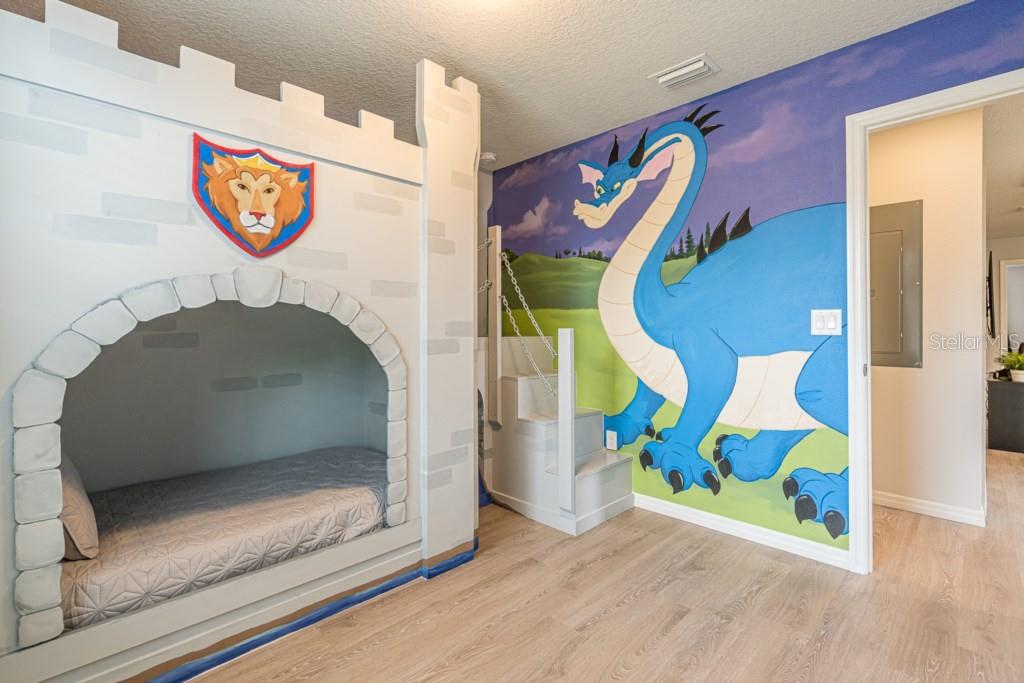 This fully furnished 5-bedroom, 4.5-bathroom property is an excellent short-term rental investment opportunity, located just 25 minutes from Disney World. Designed to comfortably accommodate up to 10 guests, the home features a king master suite, two queen suites (including one on the ground floor), and two themed bedrooms — one with a castle theme featuring knights and dragons, and another inspired by the magical world of Encanto.