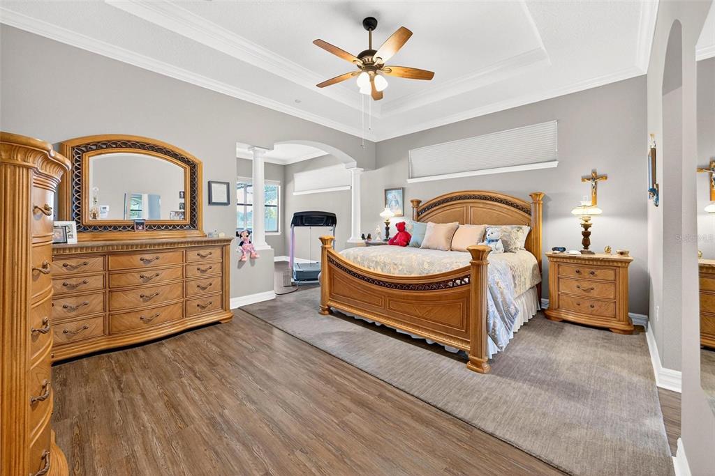 EXPERIENCE THE PERFECT HARMONY OF LUXURY, FUNCTIONALITY, AND NATURAL BEAUTY IN THIS MAGNIFICENT RESIDENTIAL MASTERPIECE ON 5 ACRES OF PRISTINE LAND!!! This masterfully constructed block home offers 5 Bedrooms. 4 Bathrooms, and 3 car garage. The main living floor hosts the sophisticated primary suite positioned for privacy & ease, featuring a tray ceiling, crown molding, separate sitting room, two California Custom Closets, a huge walk-in shower, French doors, a garden tub & plantation shutters. The thoughtfully designed split floor plan offers a bedroom in front of the home & a separate guest wing with 2 large guest bedrooms plus 2 nearby bathrooms. A chef’s kitchen is appointed with a Whirlpool professional appliance suite, cooktop, double wall ovens, granite countertops, & 42″ cabinetry that anchors an open-concept design. A formal dining room includes a tray ceiling, crown molding, plantation shutters, & beautiful lighting. The main floor offers a spacious & inviting layout designed for both quiet relaxation and gracious entertaining with guests. Relax by the warmth of the wood burning/gas fireplace in the exquisite living room, where two large windows offer tranquil views of nature. Upstairs features a guest suite, kitchenette, wet bar, storage room, plus a huge loft that is perfect for a recreation room. Step outside to your exceptional outdoor living area that is beautifully elevated with a generous lanai featuring a stunning resort-style saltwater pool with water features, all set within impeccably landscaped grounds. Adjacent to the pool deck is an impressive, Alfresco summer kitchen with a built-in grill that serves as the hub for an elevated lifestyle. The grounds are an active oasis, featuring a custom-installed putting green for golf enthusiasts and a croquet court for social gatherings & leisurely afternoon. A 40 x 60 “like new” metal building is a versatile & durable steel structure that offers 2,400 sq ft of interior space, which can serve for a wide range of uses. The walls are 18′ tall, center is 24′ tall & has (TWO) 14′ insulated doors. This extraordinary property will not last long. Schedule your private showing today!! At the entrance of this property is an electric gate & 12′ wide driveway with over 7000 sq ft of 4″ thick concrete. The property is bordered by an extensive run of modern Four-Rail (Tan) Vinyl fence which provides a simple but elegant boundary without obstructing views of the land. AC units are BRAND-NEW & the roof was replaced in 2022. THE HOT TUB DOES NOT CONVEY WITH THE HOME BUT MAY BE PURCHASED OUTSIDE OF CLOSING.