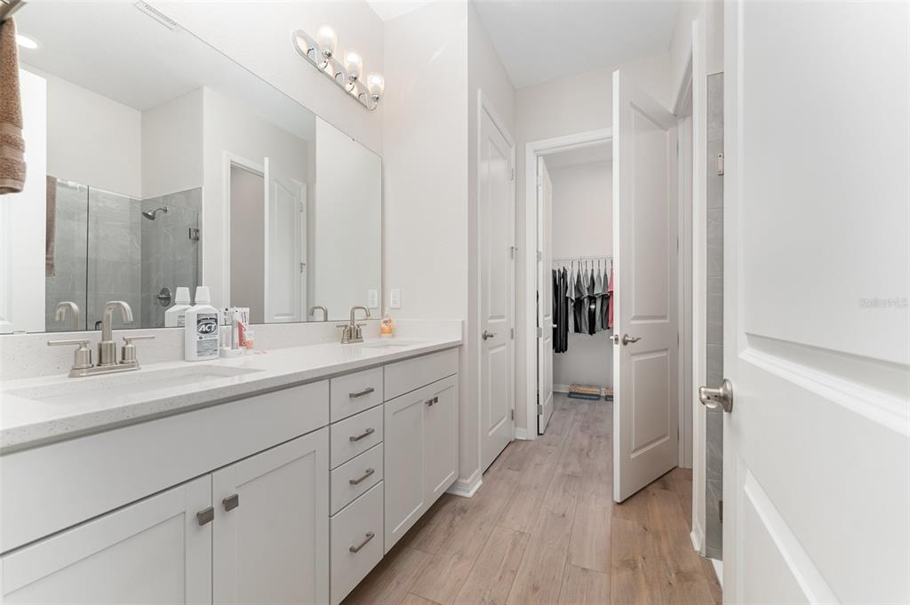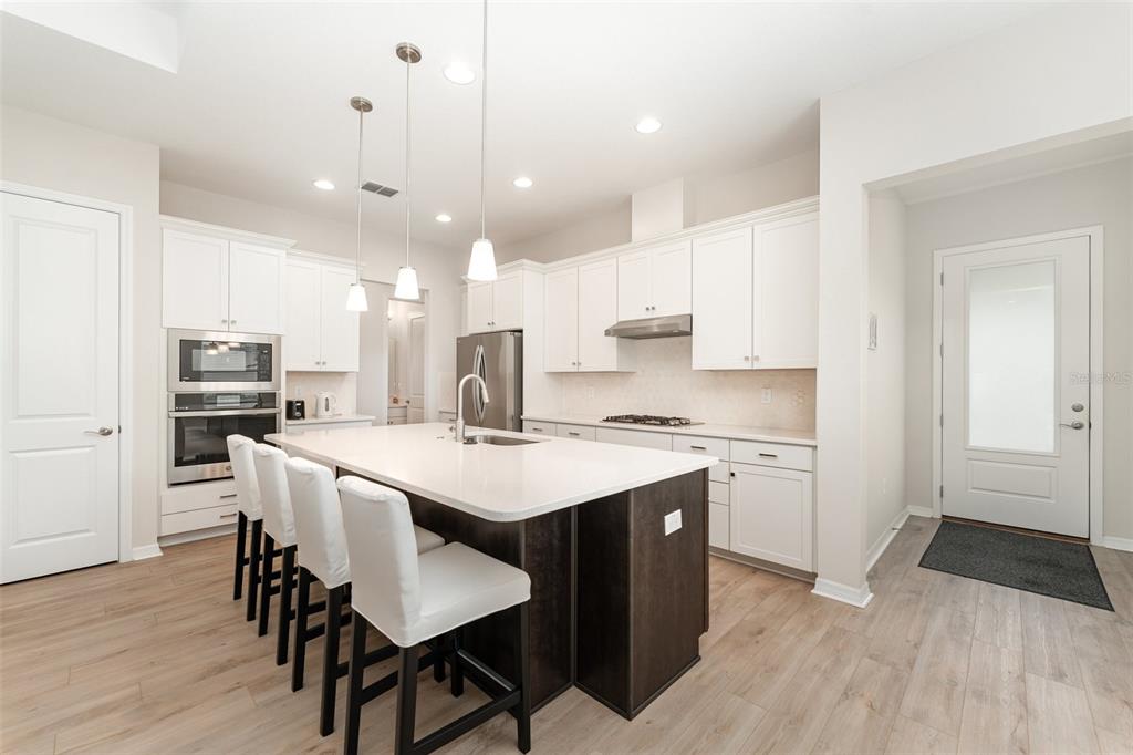 Welcome to this beautifully maintained 2-bedroom, 2-bath villa with a 2-car garage in the highly desirable Four Seasons at Orlando! Barely lived in, this home feels truly move-in ready. The open, light-filled floor plan features stylish upgrades, including luxury vinyl flooring, tray ceilings, and thoughtfully designed finishes throughout. The gourmet kitchen offers quartz countertops, modern appliances, abundant cabinetry, and a spacious island perfect for everyday living or entertaining. The primary suite serves as a private retreat with dual sinks, a walk-in shower, and a generous walk-in closet. A versatile second bedroom works well for guests, hobbies, or a home office. Step outside to the open lanai—an inviting space for morning coffee, evening relaxation, or entertaining friends. As a resident of Four Seasons, you’ll have access to a vibrant 55+ community designed around active living. Spend your days at the beautifully appointed clubhouse, take a dip in the resort-style pools, stay active with tennis, pickleball, bocce, or the fitness center, and enjoy the walking paths that wind through the neighborhood. The community also connects to the scenic Mystic Dunes Golf Course. With lawn care and exterior maintenance included in the HOA, you can focus on enjoying life instead of yard work. All of this is just minutes from Celebration, world-class attractions, shopping, dining, and top-rated healthcare, making this villa an ideal blend of convenience and lifestyle.