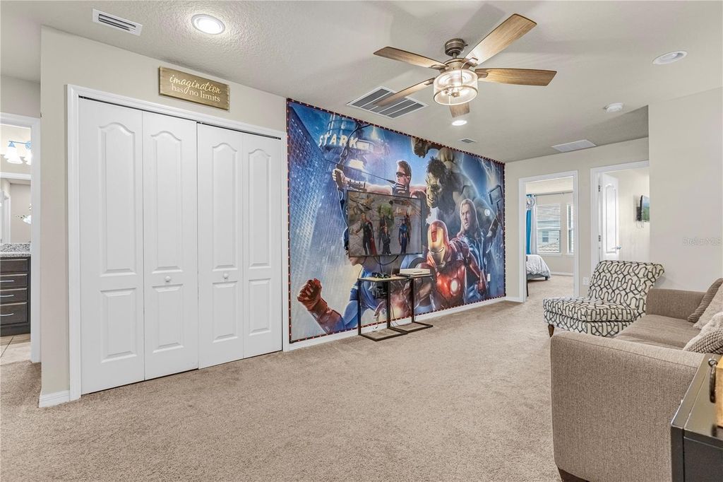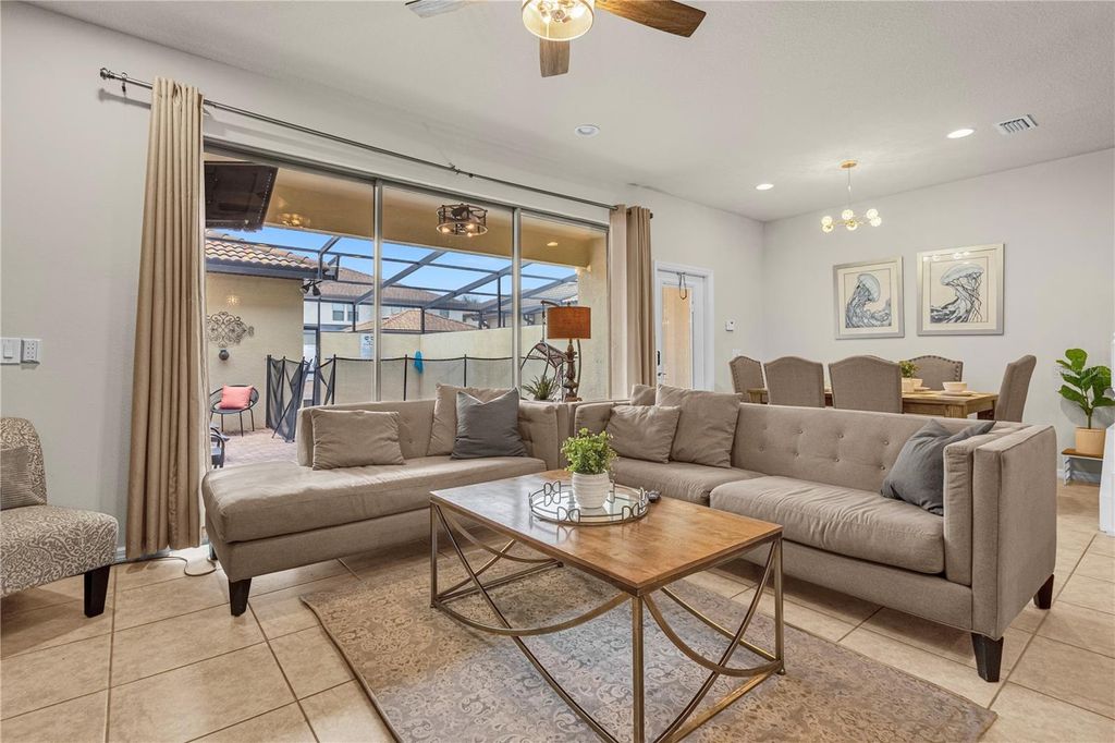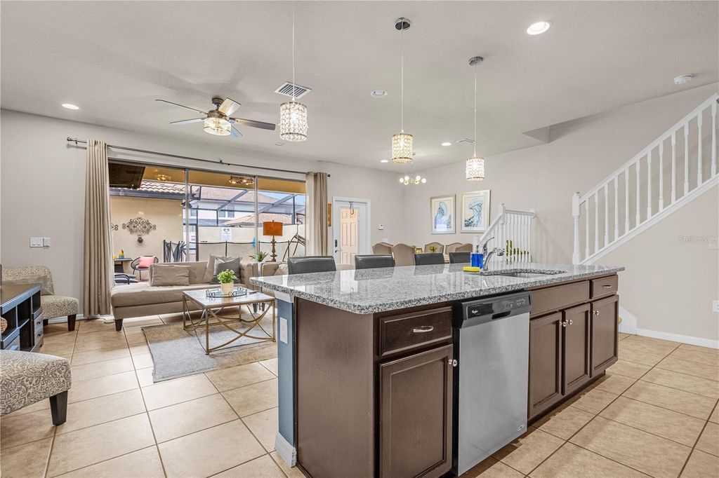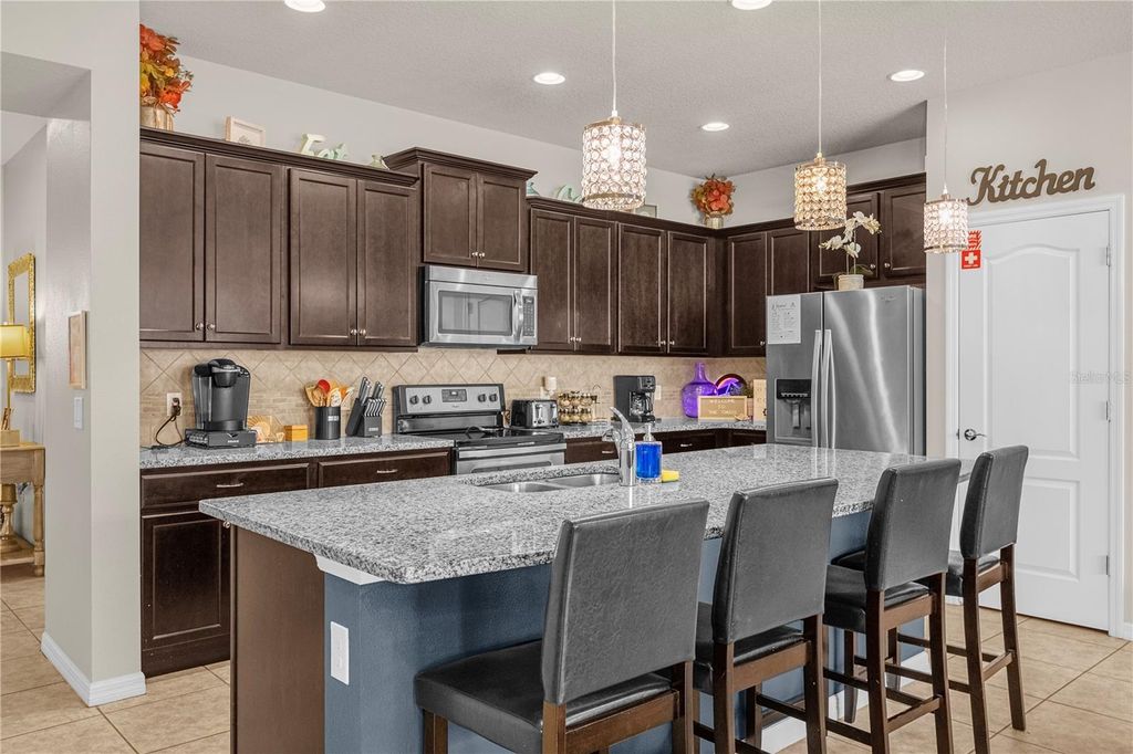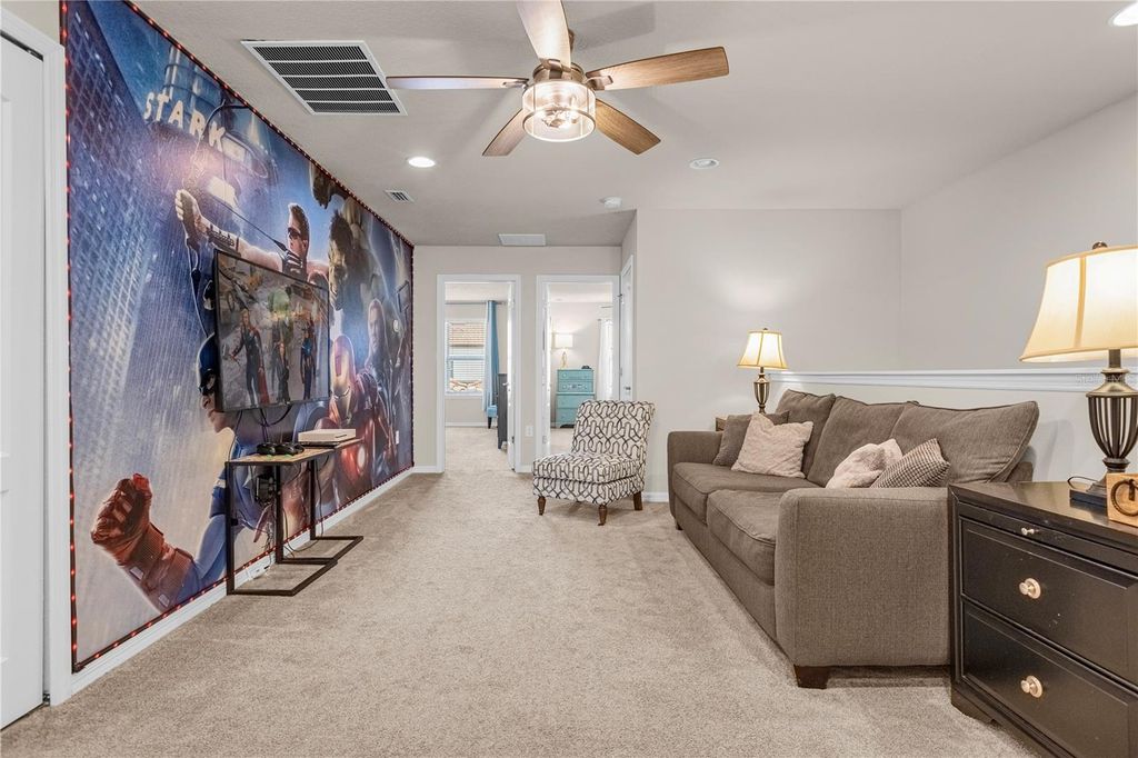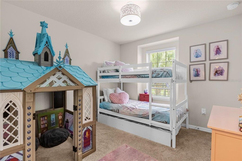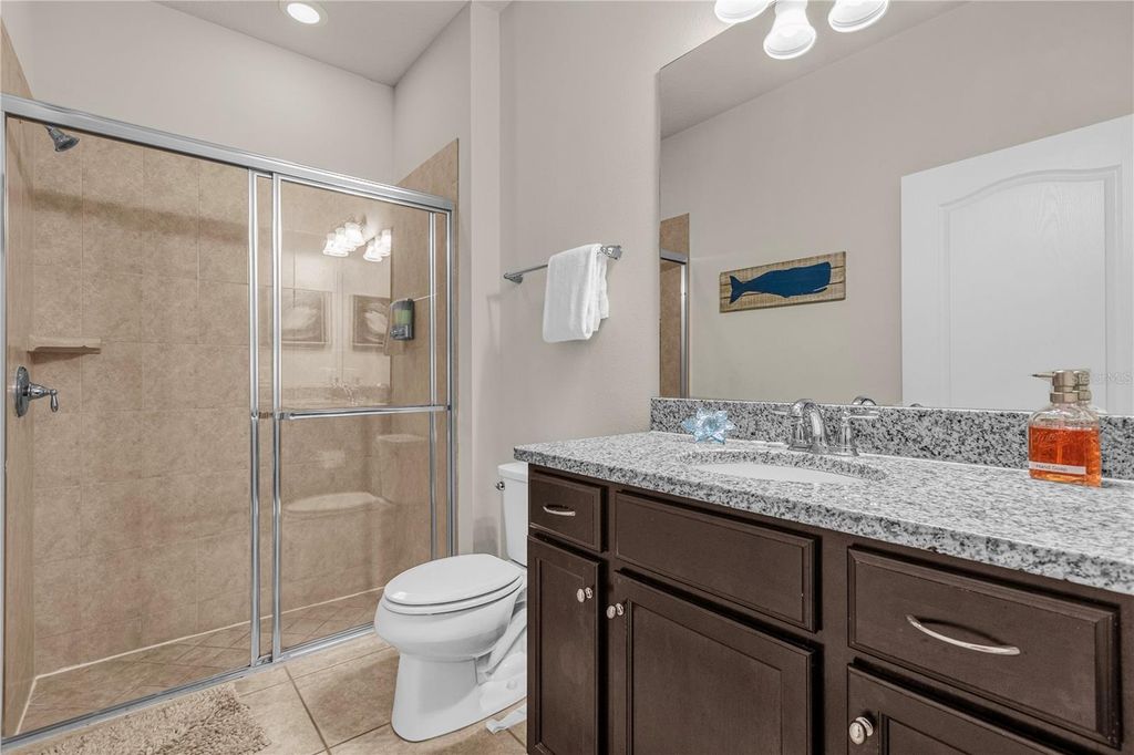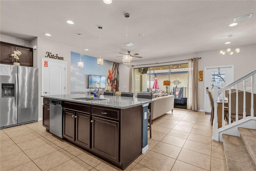 Turnkey Vacation Rental – Leased Through July 2026! This fully furnished, 5-bedroom, 4.5-bathroom vacation retreat is built for both relaxation and revenue””comfortably accommodating up to 16 guests and already leased through May 2026 for instant cash flow! Ideally located just minutes from major theme parks, this property blends modern luxury with fun-filled amenities. On the main floor, you’ll find a private king bedroom and full bathroom””perfect for multi-generational stays. The open-concept heart of the home features a stylish kitchen with granite countertops, stainless steel appliances, and a large island, flowing seamlessly into a bright, airy living room with views of the private heated pool. Step outside to a covered lanai and convenient outdoor half bath””ideal for entertaining. Upstairs, a spacious loft adds bonus living space, alongside four additional bedrooms and three full bathrooms. Two themed rooms””Frozen and Star Wars””feature custom murals and LED lighting, offering a magical experience for younger guests. Recent upgrades include fresh interior paint, a Nest thermostat, digital door locks, new lighting, plush carpeting, and high-end washer/dryer units. The detached garage provides flexible space for parking, storage, or a future game room or theater conversion. The HOA covers cable, internet, trash, lawn care, and access to resort-style amenities including a clubhouse, arcade, sports courts, lazy river, splash pad, resort pool, hot tub, gym, and the on-site Tu Casa Tiki Bar. Whether you’re looking for a personal getaway or a high-performing investment, this property delivers on both comfort and potential. Savvy investors, don’t miss this opportunity””schedule your private showing today!