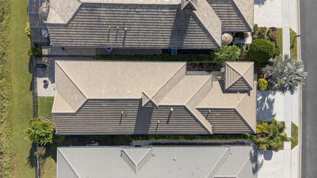 Additional highlights include a travertine driveway, two-car garage with storage, and a tile roof that enhances both durability and curb appeal.