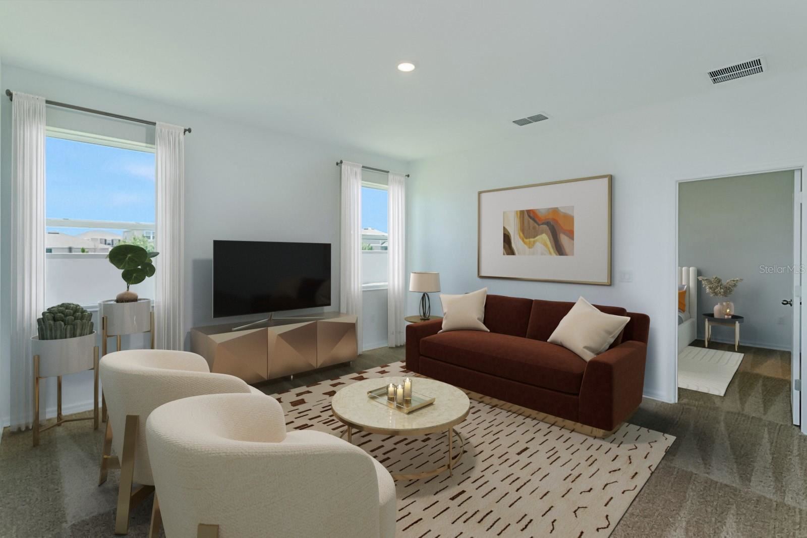 Under Construction. The Bradley floor plan is a well-designed one-story home featuring four spacious bedrooms and two bathrooms. This layout emphasizes an open concept, with the dining room flowing seamlessly into the great room, creating a bright and airy central living space perfect for gatherings. The kitchen offers easy access to the dining area, making meal times and entertaining more convenient. The owner’s suite includes a walk-in closet and private bath, offering a personal retreat. A cozy patio area extends the living space outdoors, and the two-car garage adds functionality to this thoughtfully planned home.