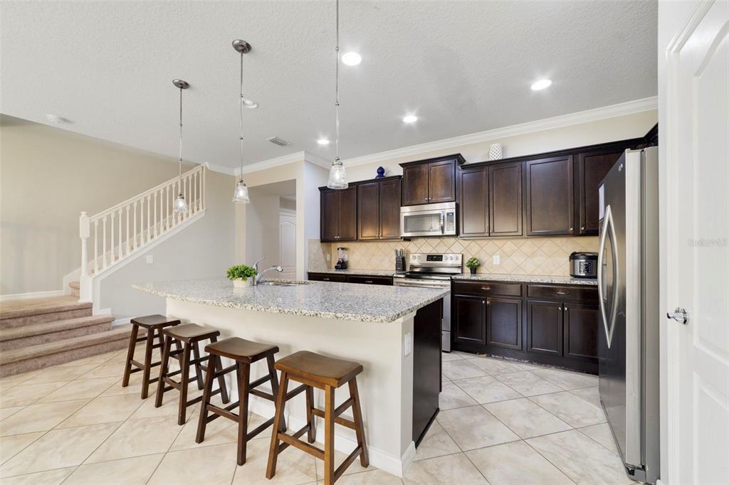 Seller may consider buyer concessions if made in an offer ~ Welcome to opportunity in the GUARD GATED ~ RESORT COMMUNITY of Windsor at Westside – a FULLY FURNISHED ~ TURN KEY 5-bedroom, 4.5-bath PRIVATE POOL townhome that books well as a short-term rental and is ready to generate income from day one! Thoughtfully designed and tastefully decorated, this home feels light, bright, fresh, and truly move-in ready. TILE FLOORS flow throughout the main living areas, complemented by crown molding that elevates the OPEN CONCEPT living and dining spaces. The modern kitchen is both functional and stylish, featuring STAINLESS STEEL APPLIANCES, a tiled backsplash, ample cabinet and counter space, recessed lighting, pantry storage, and a large ISLAND with bar seating under pendant lighting – perfectly positioned to overlook the living and dining areas, making staying connected and entertaining effortless. A built-in drop zone at the foyer adds convenience for guests arriving and departing, while the covered front entry enhances curb appeal. The flexible floor plan includes a MAIN FLOOR BEDROOM & FULL BATH – ideal for multi-generational stays or guests who prefer first-floor accommodations. Upstairs, you will find the generous PRIMARY SUITE, a secondary en-suite bedroom with its own private bath, and additional well-appointed bedrooms and bathrooms designed with comfort and functionality in mind. Step outside to your COVERED PAVER LANAI and PRIVATE SCREENED POOL – a must-have for today’s vacation rental guests – complete with a convenient poolside half bath. Whether guests are soaking up the Florida sunshine poolside or floating the lazy river at the clubhouse, this property delivers the FULL RESORT EXPERIENCE. In addition to your private pool, Windsor at Westside offers a stunning community pool, clubhouse, fitness center, restaurant, game room, and one of the area’s most sought-after lazy rivers – amenities that consistently attract repeat bookings. The 1-car garage adds storage and owner convenience, while the LOW MAINTENANCE townhome lifestyle makes this an easy choice for investors or vacation home/second-home buyers alike. Located just minutes from world-famous theme parks, championship golf courses, premier shopping and dining, and with easy access to US-27 and 192, Windsor at Westside remains one of Kissimmee’s sought-after short-term rental communities. If you have been searching for a well-performing, fully furnished, income-producing vacation home in a true resort-style community – this is the one! Call today for more information and schedule a tour!