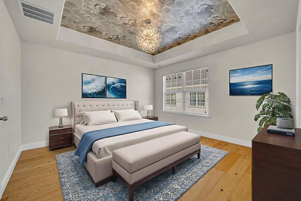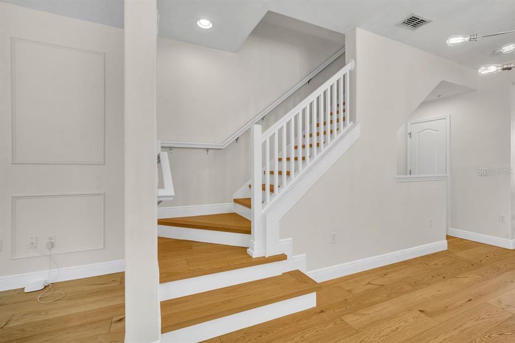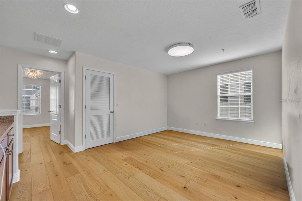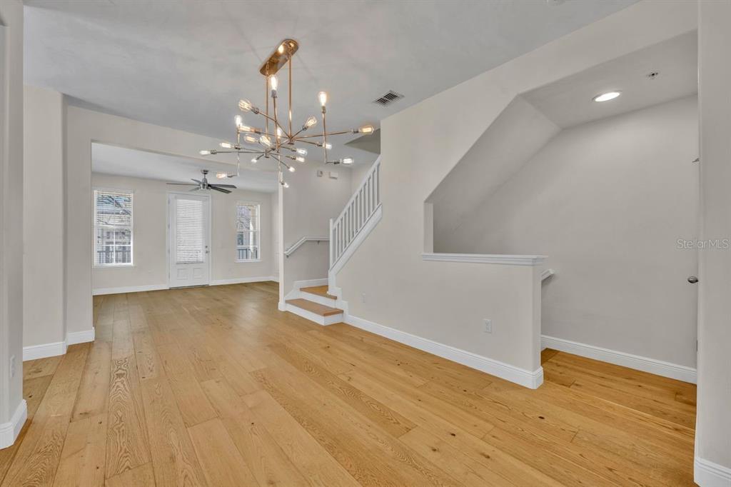 One or more photo(s) has been virtually staged. Nestled in a peaceful courtyard setting, this beautifully appointed three-story townhome is ideally located in the heart of Baldwin Park, just a short walk to the Grace Hopper Pool, clubhouse, fitness center, and Lake Baldwin. Throughout the home, light oak hardwood flooring adds warmth, elegance, and timeless appeal.The first level features a private bedroom with a separate entrance, perfect for guests or a home office. This space includes an ensuite bathroom with a single vanity and walk-in shower, along with a large adjacent closet offering additional storage. An attached two-car garage completes this level. The second floor is the main living area and is filled with abundant natural light. The living room is enhanced by a custom wood-panel accent wall, adding texture, warmth, and a modern design touch. It opens to a private balcony overlooking the tranquil courtyard. The living room flows seamlessly into the dining area and kitchen, creating an ideal layout for entertaining. The kitchen features granite countertops, a classic subway tile backsplash, stainless steel appliances, and a center island. A dedicated space for a breakfast nook sits just off the kitchen, along with a conveniently located half bath. The third level offers a thoughtful and functional layout, with a versatile bonus room positioned between the primary bedroom and the second bedroom, perfect for a media room, lounge, or study space. A full laundry room is also located on this level. The second bedroom is located off the full bathroom with dual sinks and a shower/tub combination. The primary bedroom showcases a stylish tray ceiling accented with a striking light fixture and tasteful wallpaper detailing, offering an elegant and serene atmosphere. The primary suite offers a large walk-in closet with custom built-in drawers and shelving and has an ensuite bathroom comprised of dual vanities and a walk-in shower. This low-maintenance townhome offers thoughtfully designed outdoor spaces including a welcoming front porch and a balcony overlooking the tranquil courtyard. Home improvements include a new roof in 2025, water heater: 2023, HVAC: 2024. Baldwin Park residents enjoy access to three community pools, two fitness centers, and a vibrant neighborhood with shops, restaurants, and exceptional walkability. This home offers the perfect blend of modern comfort, thoughtful design, and the unbeatable Baldwin Park lifestyle. It’s a true oasis in a desirable and peaceful location.