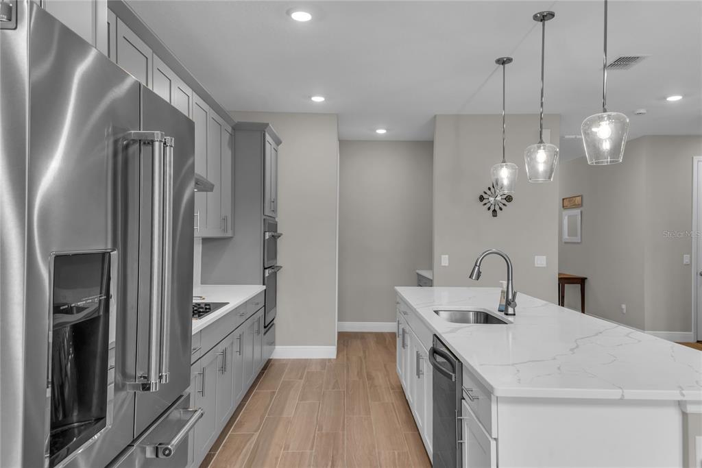 This move-in-ready Ashton Woods Duval floorplan offers nearly 4,000 square feet of upgraded living space and is one of the very few homes in the area featuring a true 3-car garage – not converted into a game room – making it a rare opportunity in Glen at West Haven. Built in 2023, this 6 bedroom, 4.5 bath home stands out for its soaring two-story family room ceilings, 8 foot doors on the first floor, and a highly functional layout that includes a private office with French doors, a secondary flex space with closet ideal for a second office or sixth bedroom, and a full bedroom with en-suite bath on the main level for guests or multigenerational living. Upstairs, a spacious loft overlooks the main living area, adding flexibility and separation without sacrificing openness. The gourmet kitchen features 42 inch cabinetry with crown molding, an oversized quartz island, built-in oven and microwave, butler’s pantry, walk-in pantry, and seamless flow into the dining and family room areas, while premium upgrades throughout the home include a custom two-story stone fireplace façade with a built-in electric fireplace, added shelving for display and storage, epoxy garage floors with overhead storage, remote-controlled upper window blinds, a covered and screened lanai overlooking a fully fenced backyard, enhanced stone landscaping, permanent holiday lighting, and wired exterior security cameras. Located in a resort-style community with pool, clubhouse, fitness center, tennis courts, and walking trails, this home offers space, upgrades, and garage capacity rarely found at this price point in the area and is well suited as a primary residence, vacation home, or short-term rental opportunity.