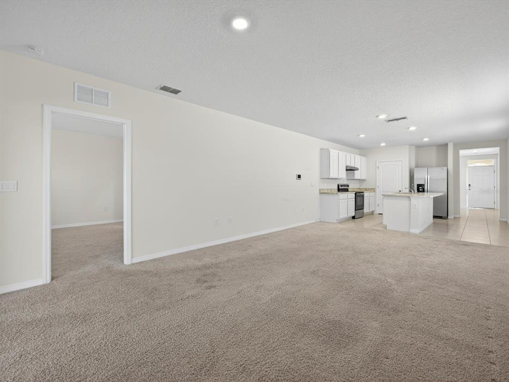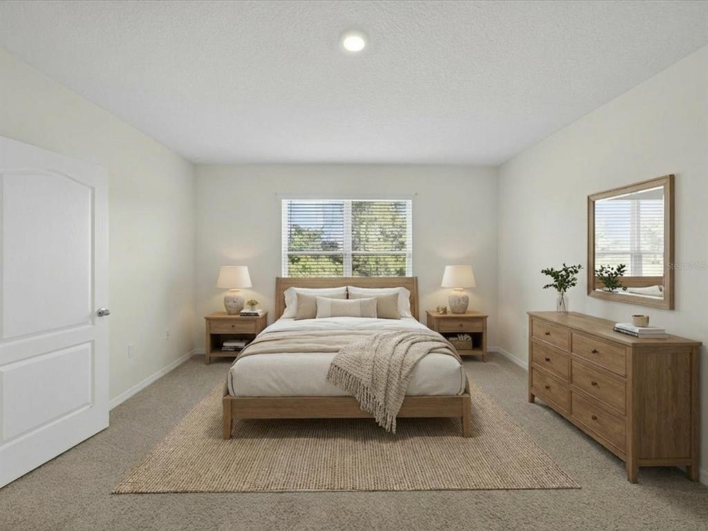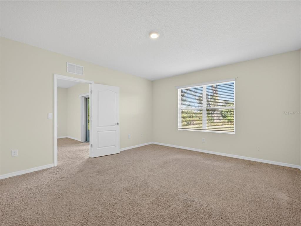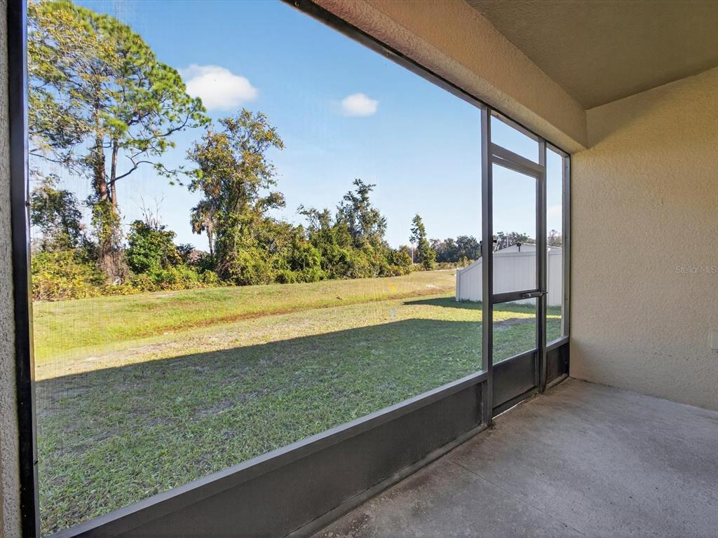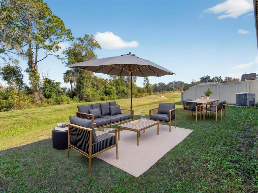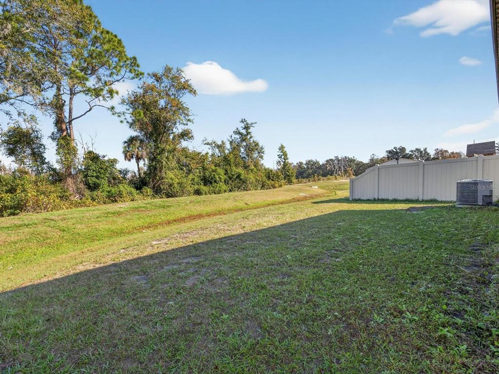 Welcome to this beautifully maintained energy efficient smart home featuring an open-concept floor plan that flows seamlessly from the front entry into the spacious kitchen and living area—perfect for modern living and entertaining. PAID in FULL SOLAR PANELS saving thousands on utility bills and screened patio overlooking conservation land make this home an ideal choice for those seeking comfort and value. The split-bedroom layout offers privacy, with two guest bedrooms and a full bath situated at the front of the home, while the primary suite is tucked away at the back for added tranquility. The primary bedroom includes a large walk-in closet and a private ensuite bath with dual sinks, a walk-in shower, and a separate water closet. Additional highlights include a water filtration system, and smart home hub allowing you to control the lights, AC and security system from your phone. The vibrant community of Horse Creek has a community pool and playground. Located in the heart of Davenport, close to theme parks, shopping, theaters and more. This move-in-ready home combines energy efficiency with everyday functionality.