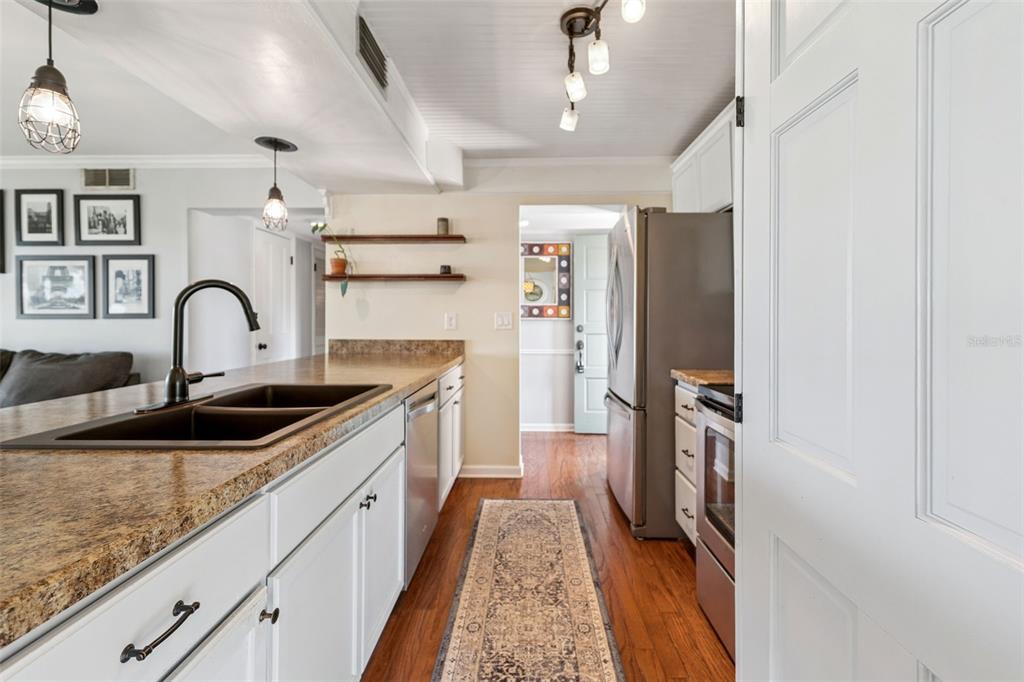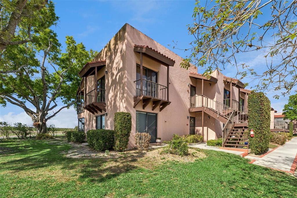 Beautiful end unit condo in excellent move-in ready condition! New price! This 2-bedroom, 2-bath second floor condo offers an updated kitchen with a new ceiling & lighting, modern cabinets and stainless steel appliances, along with remodeled baths with newer vanities and granite countertops. The primary bedroom has an en suite bath and a spacious walk in closet with nice views of the lawn and trees. Natural light fills the living space, and double sliding glass doors open to a 7 x 20 covered porch overlooking peaceful oak trees and landscaped grounds—an ideal spot to relax and enjoy the view. A perfect blend of comfort, style, and easy maintenance living. A/C replaced 2023. The community features include sidewalks, a clubhouse, tennis & shuffleboard courts, pool, and beautifully maintained grounds. Convenient Central Florida location with easy access to Hwy 27 & State Rd 60 close to shopping, medical, restaurants and parks.