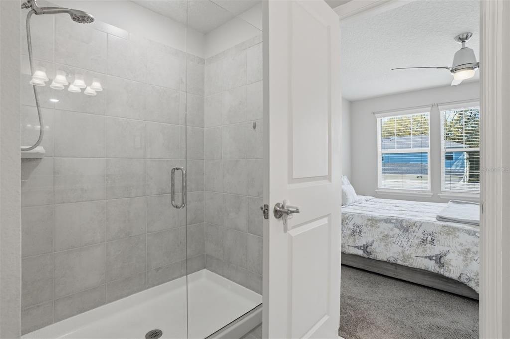 Upstairs, the primary suite offers a relaxing retreat with a custom walk in closet and an upgraded bathroom featuring elevated countertops and a frameless glass shower. Additional bedrooms provide comfortable space for family, guests, or a home office.