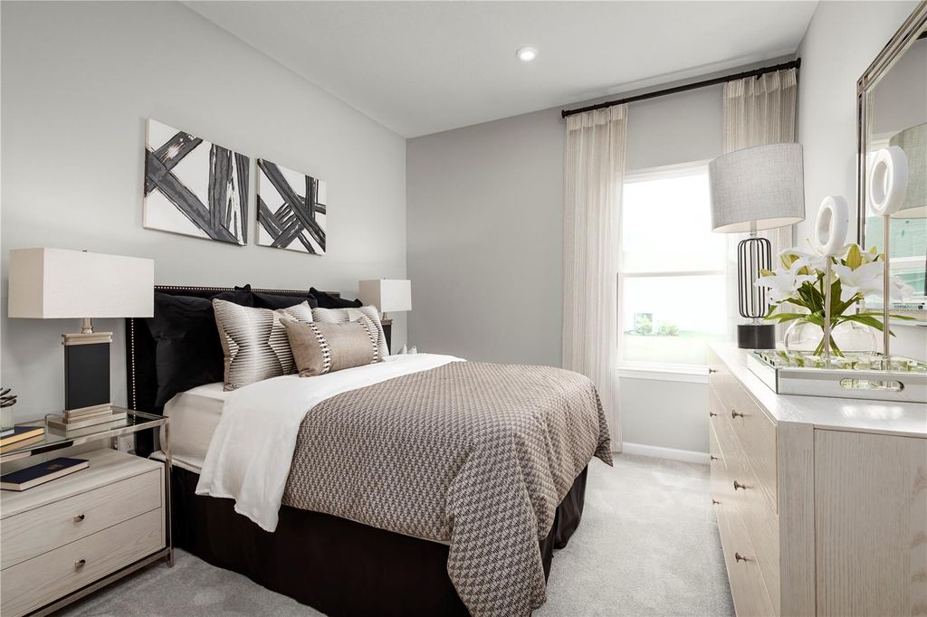 Quick Move-in! Welcome to Bella Terra! Low HOA with oversized homesites and gorgeous hill views. Intimate community of just 59 homes with private backyards. Located off US-27, near area amenities & walking distance to schools. Ten minutes to Downtown Historic Clermont, 20 minutes to Downtown Winter Garden. 30 minutes to Downtown Orlando and Disney. The Sandalwood single-family villa sets the standard for main level luxury. A convenient family entry welcomes you inside to unmatched space and style. A full bath sits between 2 bedrooms, while a guest suite with full bath is found off the 3-car garage. Use the versatile flex space as a home office. The gourmet kitchen includes a large island overlooking dining space and the family room, ideal for gathering with family and friends. Your luxurious owner’s suite features a double vanity bath and massive walk-in closet, plus private access to the rear lanai. You’ll be stunned by The Sandalwood. All Ryan Homes now include WIFI-enabled garage opener and Ecobee thermostat. **Closing cost assistance is available with use of Builder’s affiliated lender**. DISCLAIMER: Prices, financing, promotion, and offers subject to change without notice. Offer valid on new sales only. See Community Sales and Marketing Representative for details. Promotions cannot be combined with any other offer. All uploaded photos are stock photos of this floor plan. Actual home may differ from photos.