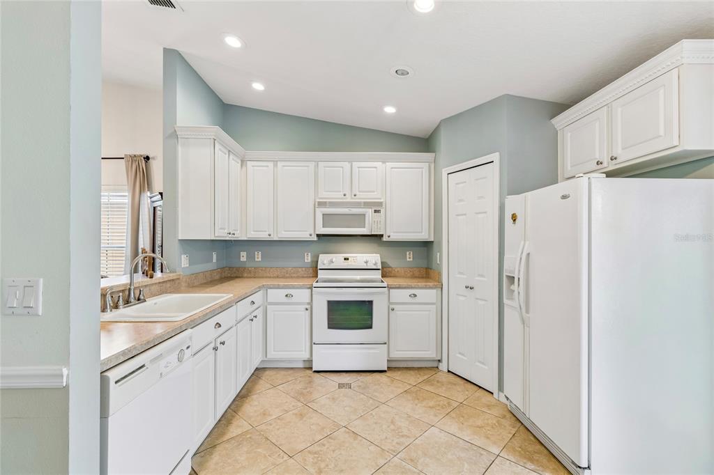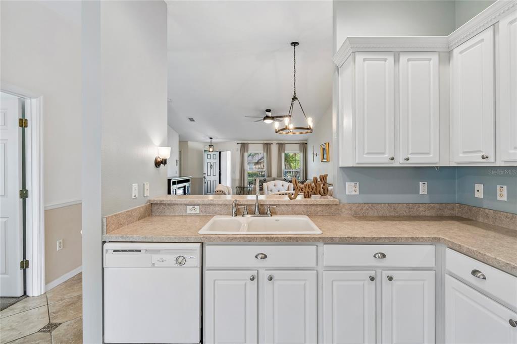 Step into this lovely DUVAL model with peaceful WATER VIEWS in the popular Venezia neighborhood of Solivita. This 2-bedroom, 1.5-bath home has a bright, OPEN LAYOUT that makes it feel welcoming and easy to live in. Inside, you’ll notice the CERAMIC TILE FLOORS set on the diagonal with decorative MOSAIC ACCENTS that add a nice touch throughout the main living areas. The spacious kitchen has plenty of counter space, a COZY EAT-IN AREA for everyday meals, and a CLOSET PANTRY for extra storage. Sliding glass doors lead outside, letting in lots of natural light and making it easy to enjoy the outdoors. The BREAKFAST BAR opens to the dining area, so you can chat with guests while getting meals ready. The combined living and dining area is highlighted by VAULTED CEILINGS and abundant natural light, creating a bright and airy atmosphere. Step outside to your COVERED, SCREENED LANAI, where peaceful EASTERLY WATER VIEWS provide the perfect backdrop for morning coffee or relaxing evenings. A FENCED YARD adds a great space for pets to enjoy. The PRIMARY SUITE offers tranquil pond views, a large WALK-IN CLOSET, and an EN-SUITE BATH complete with a tub/shower combination and linen storage. A second bedroom and convenient half bath complete the interior layout. HVAC WAS REPLACED IN 2025. Additional features include a 1.5-car garage with washer and dryer, UTILITY SINK, and built-in storage cabinets. Don’t miss this rare opportunity to own a slice of paradise—schedule your private showing today and experience all that this award-winning community has to offer! The HOA: – maintains the LANDSCAPING & IRRIGATION systems in the common areas as well as at individual homesites – maintains the roads throughout the community – PROVIDES SECURITY with gate guards and mobile patrols including the Polk County Sheriff – allows AUTOMATED GATE ACCESS for residents via license plate readers – provides residents with Fiber Optic Internet & TV service.***Poinciana Lakes Plaza is a MAJOR NEW SHOPPING CENTER directly across from the Solivita Main Gate. It features Sprouts Grocery, TJ MAXX, Ross, Burlington, Rack Room Shoes, 5 Below, Ulta, Outback, First Watch, 5 Guys, Panda Express, Bojangles, Jersey Mike’s Subs, 5 Guys, Papa John’s Pizza, Burrito Bar, Cold Stone Creamery, Urgent Care, Dentist, Hand & Stone Massage, America’s Best Eyeglasses, Crunch Fitness, Hair Cuttery, Petco, TD Bank, Verizon Mobile, PLUS MORE TO COME.***