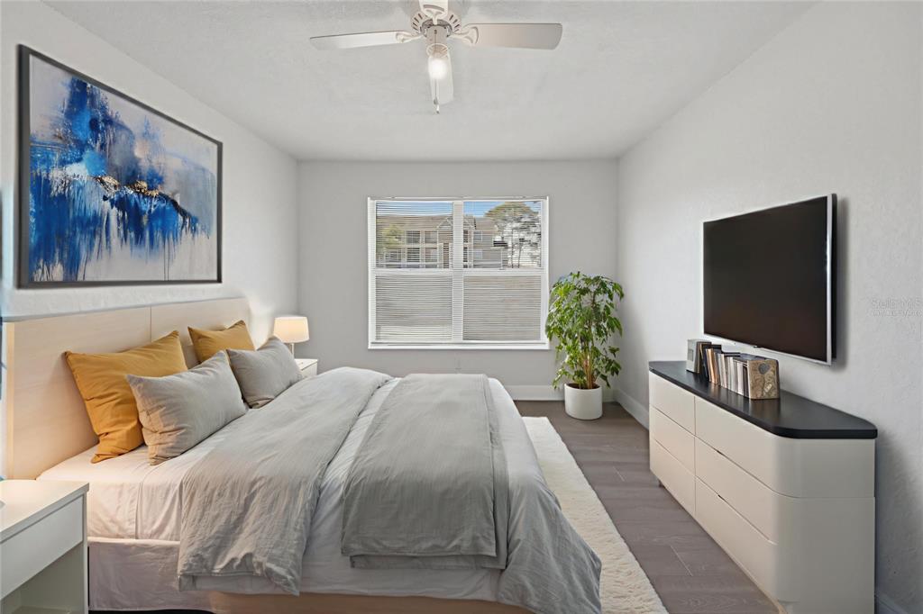 One or more photo(s) has been virtually staged. Come see this well-located 3 bedroom, 2 bath one-story townhouse near Disney and just minutes from Downtown Kissimmee. Homes like this are hard to find in this area, especially with low HOA fees, great community amenities, and convenient access to major roads, shopping, and popular restaurants. This home offers a private side entrance and additional outdoor space, giving you added privacy and a great place to relax and enjoy. Inside, the layout features an open living and dining area with vaulted ceilings that create a bright and airy feel, along with ceramic tile and laminate flooring for easy maintenance. The kitchen offers ample cabinetry and essential appliances, while the primary suite includes a walk-in closet and private bath. Recent updates to the roof, HVAC, and water heater add even more value and peace of mind. The community features amenities including a pool, playground, and tennis courts, making this an even more attractive opportunity. Whether you are looking for a primary residence, second home, or investment property, this townhouse stands out for its location, affordability, and hard-to-find low association fees. Schedule your showing before it goes under contract.