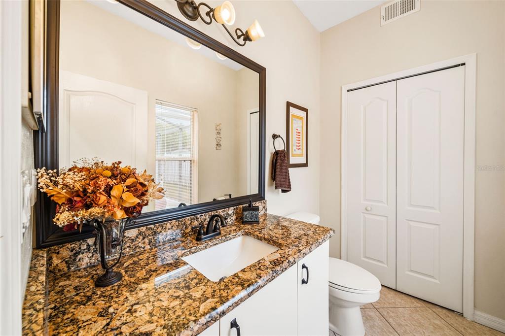 Step inside to an inviting and functional layout featuring a bright formal living and dining room overlooking the front yard. The spacious family room flows seamlessly to the screened-in pool area—ideal for entertaining or relaxing after a long day. At the heart of the home, the gourmet kitchen shines with granite countertops, prep island, and casual dining space, complete with sliding doors that open to your private outdoor oasis.