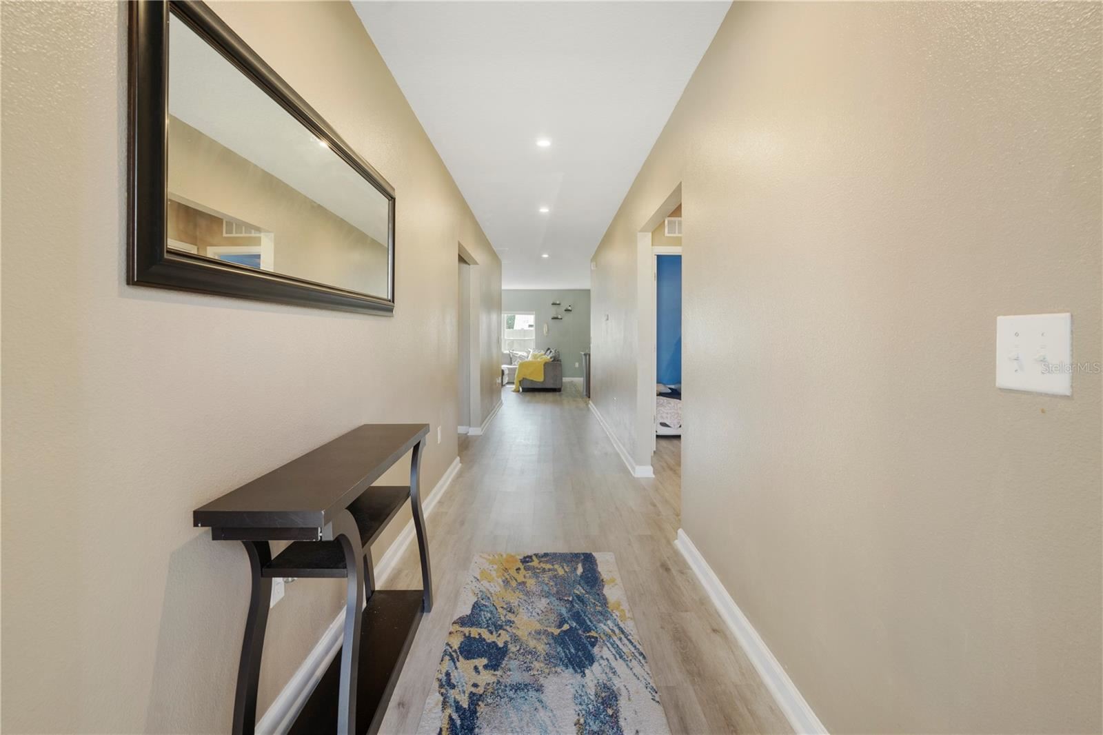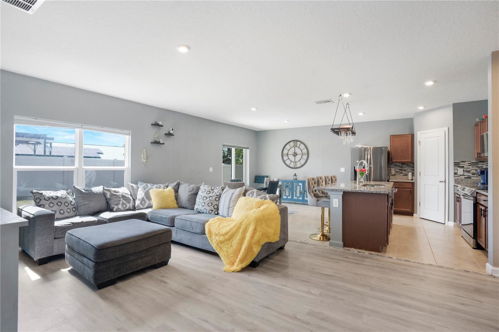 This beautiful 4 bedroom, 2 bath home is filled with natural light and features a desirable split floor plan with an open-concept layout. The home is energy-efficient with solar panels and includes smart home technology for added convenience. It showcases laminate flooring throughout the main living areas and bedrooms, with ceramic tile in the bathrooms. The kitchen boasts granite countertops, stainless steel appliances, and ample cabinetry. Enjoy the outdoors in your large fenced backyard, complete with a covered lanai perfect for relaxing or entertaining. Conveniently located near shopping, dining, and Central Florida’s top attractions such as Disney, Universal, SeaWorld, and Legoland, this home offers both comfort and an unbeatable location.
