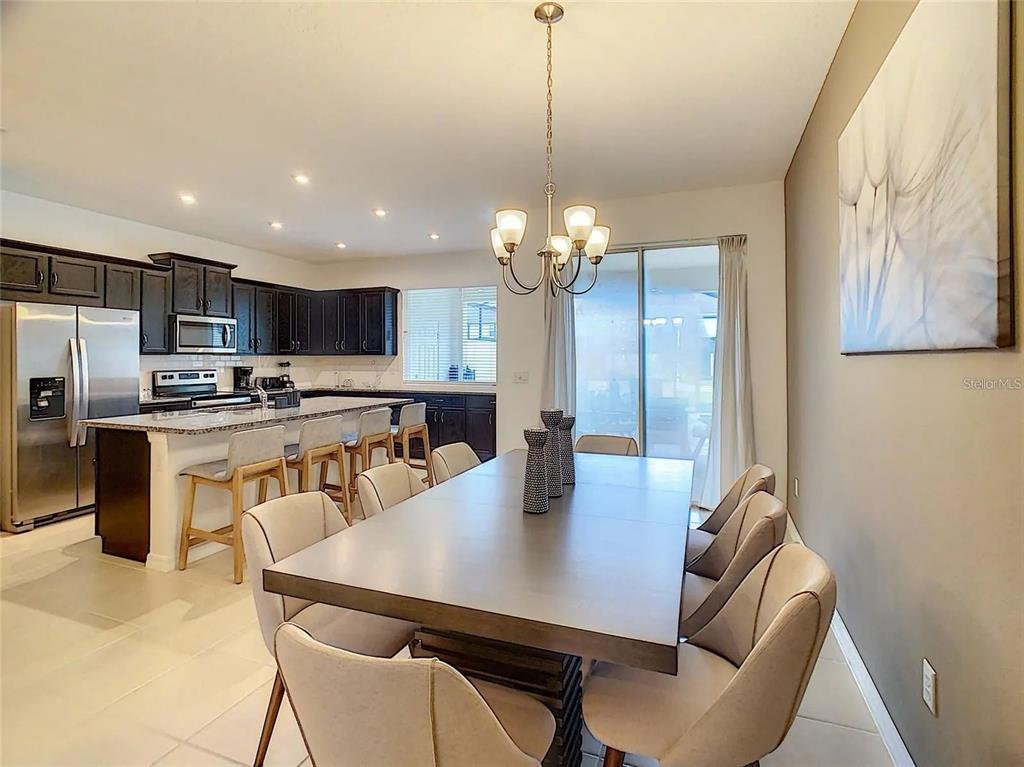 Set within this dynamic community is a beautifully designed, fully furnished **four-bedroom, four-and-a-half-bathroom pool home** at **2182 Cooper Bell Place**. This residence is a true retreat, blending elegance with comfort in every detail. As you step inside, the main level welcomes you with an open-concept living, dining, and kitchen space, crafted for both entertaining and relaxation. The chef’s kitchen boasts sleek dark cabinetry, sparkling countertops, premium appliances, and an expansive bar area—perfect for casual meals or evening cocktails with friends.